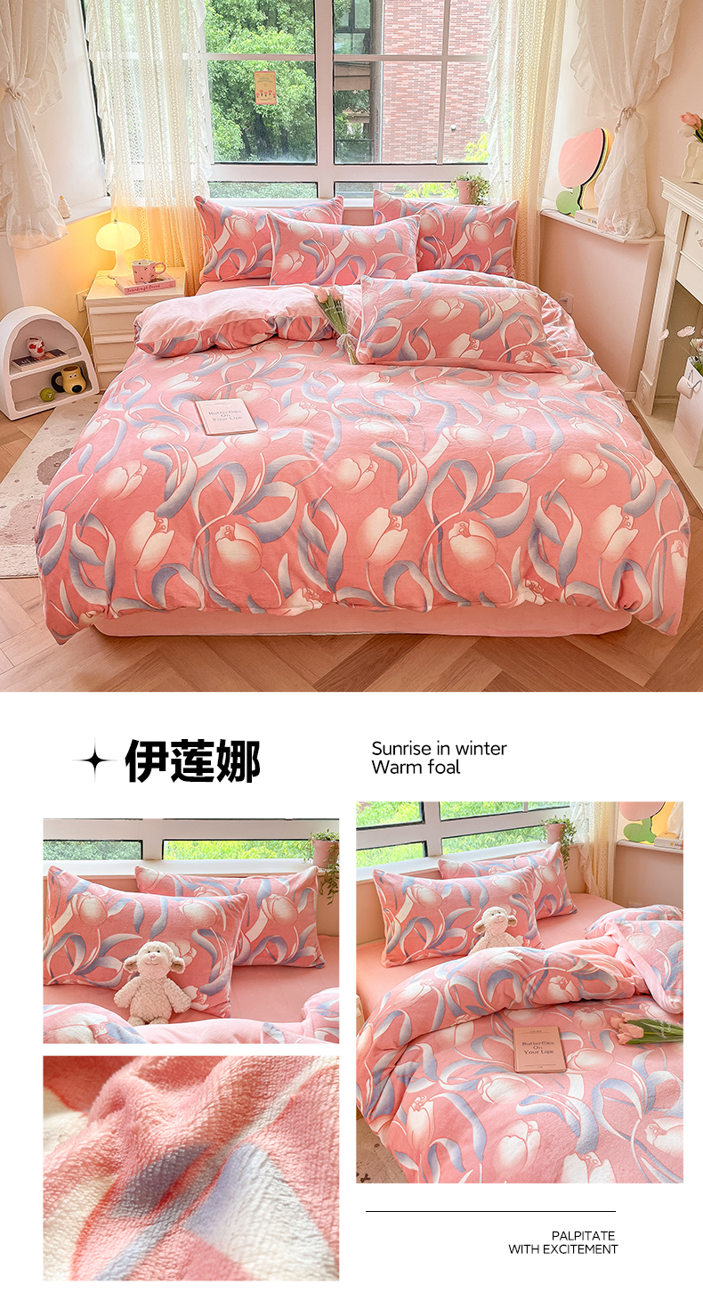 商品名称:卡派 2024新款冬季亲肤透气牛奶绒印花四件套 伊莲娜