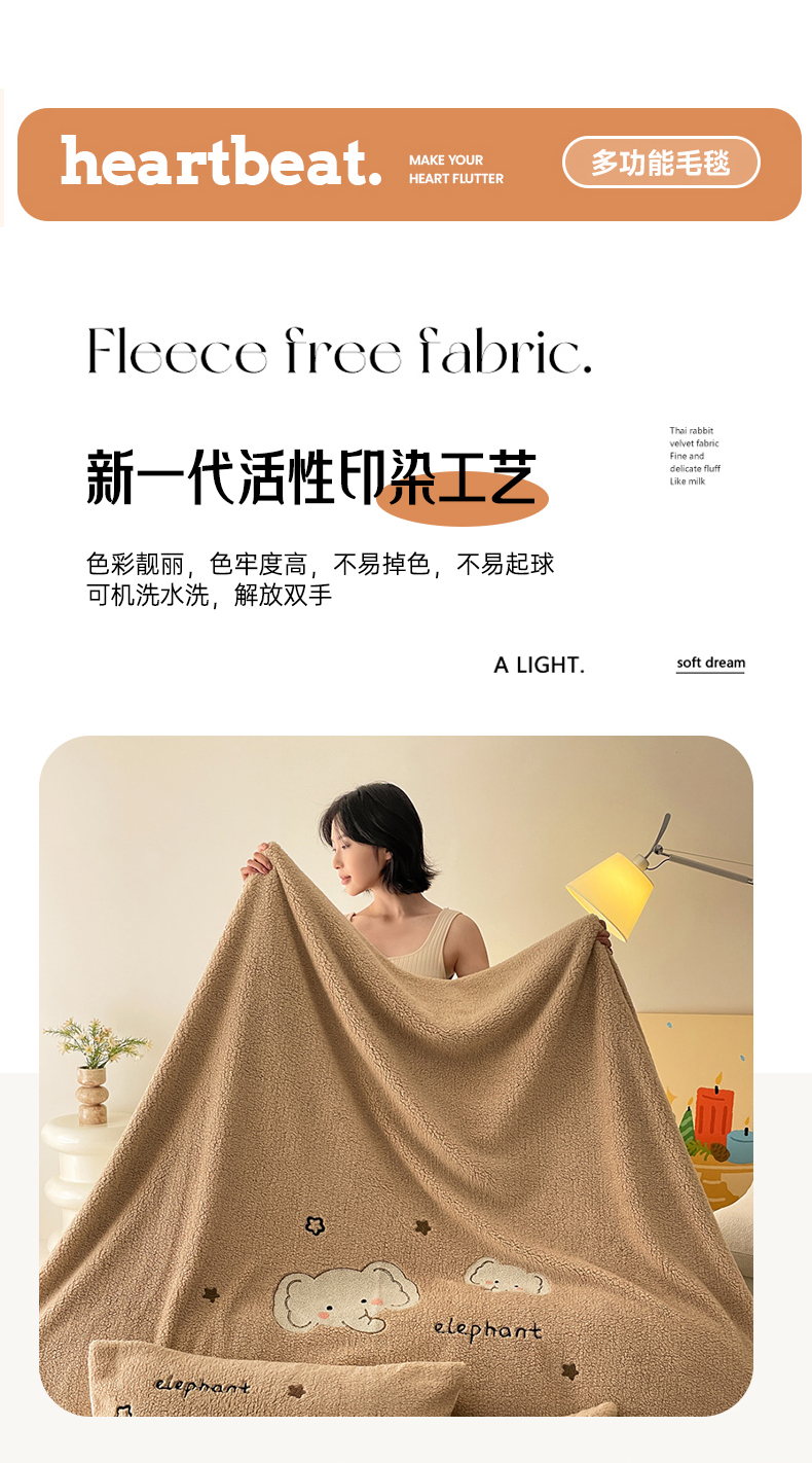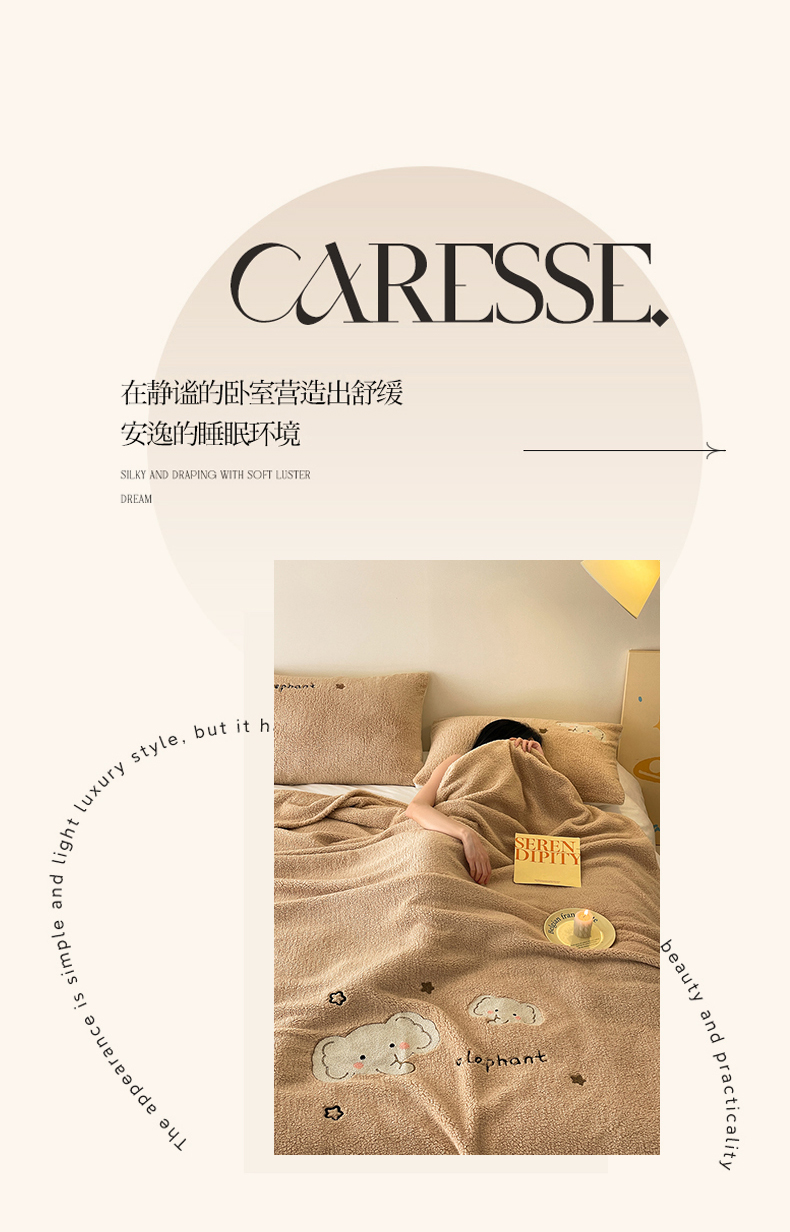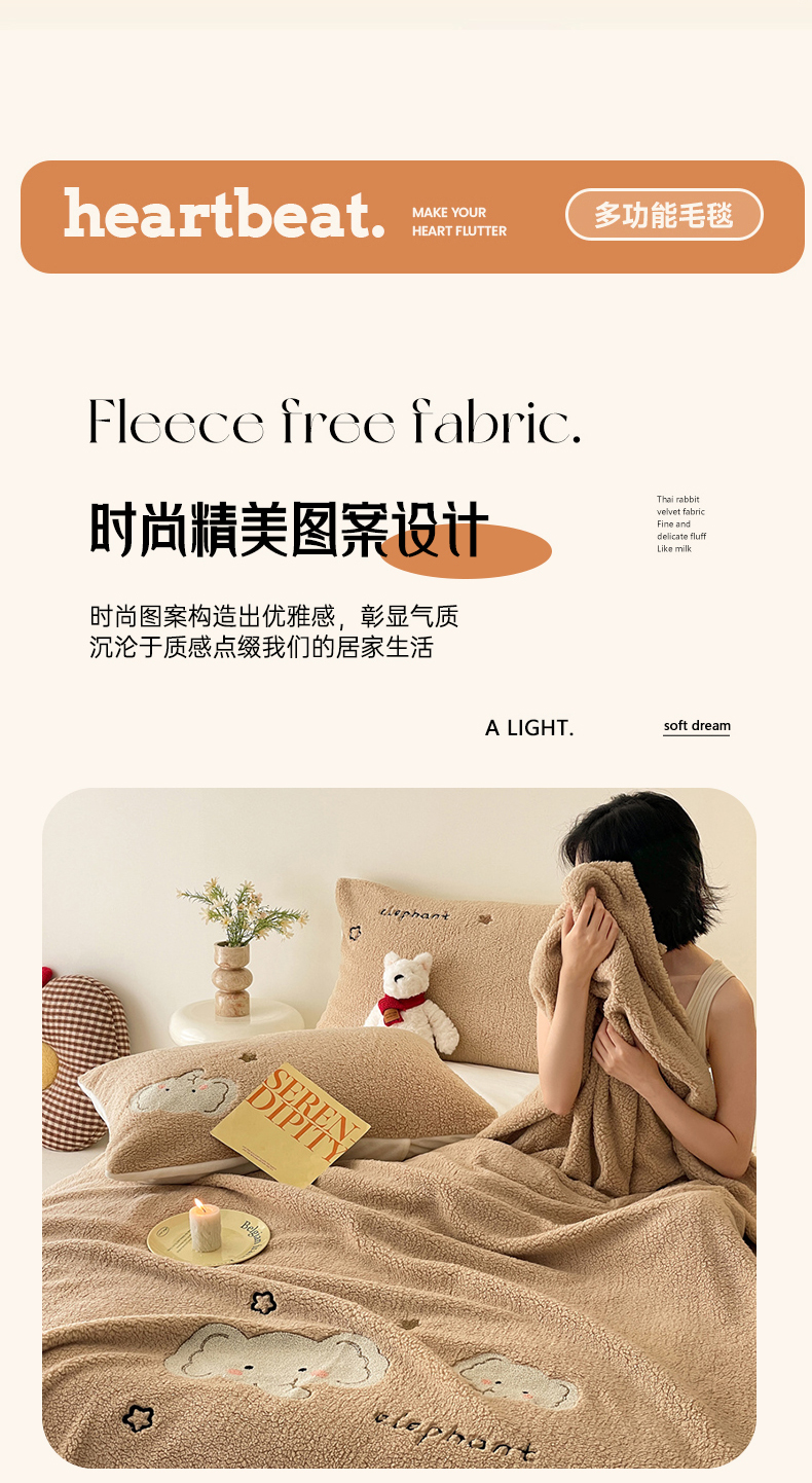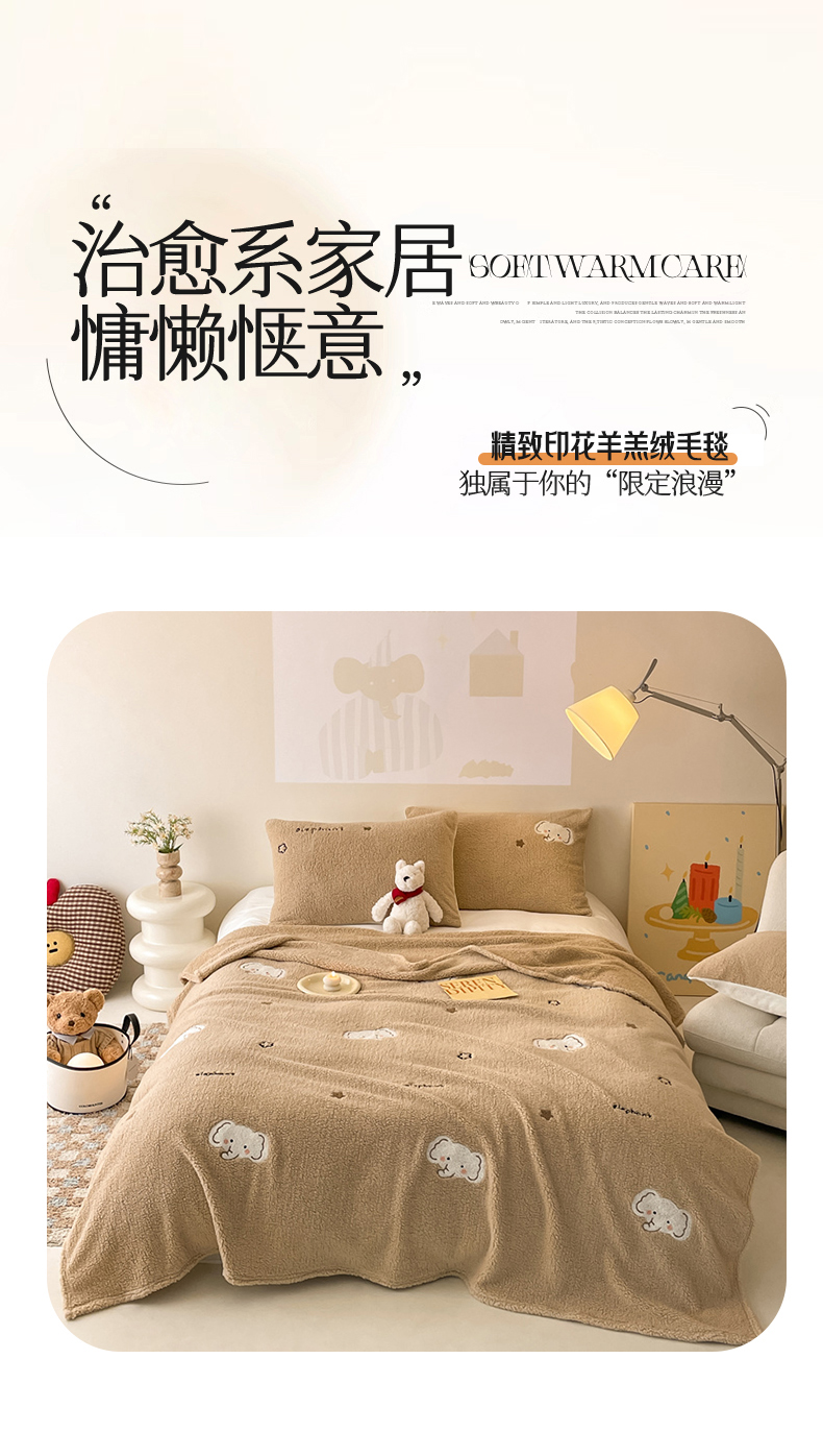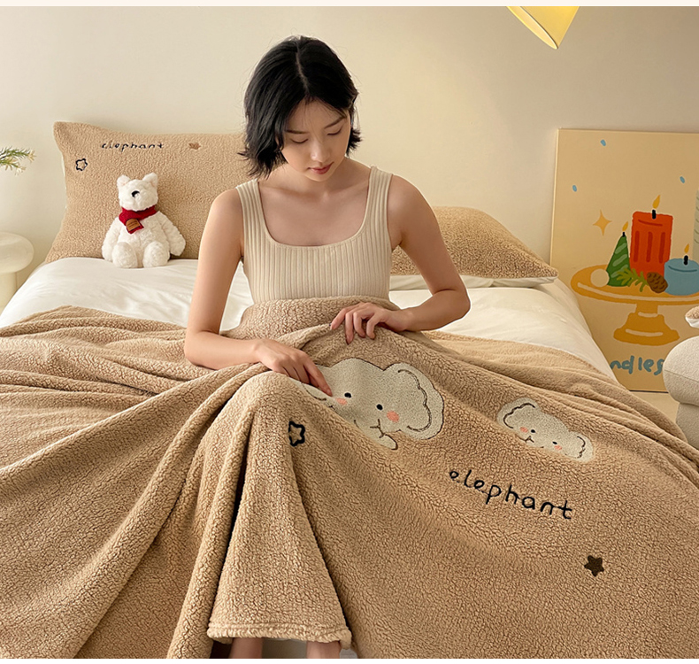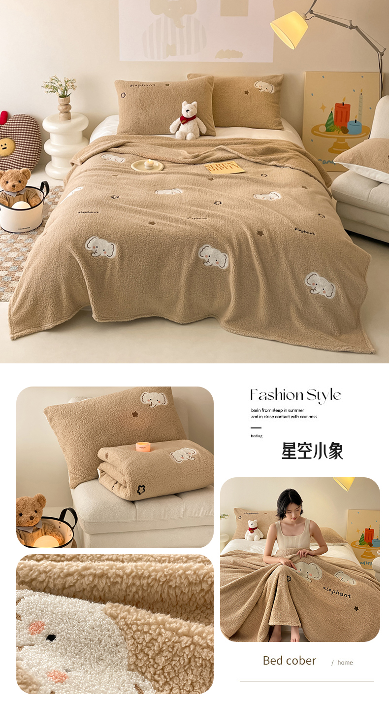 商品名称:川悦生活 2024新款双面高克重雪花绒卡通羊羔绒泰迪绒毯子毛毯 毛毯星空小象