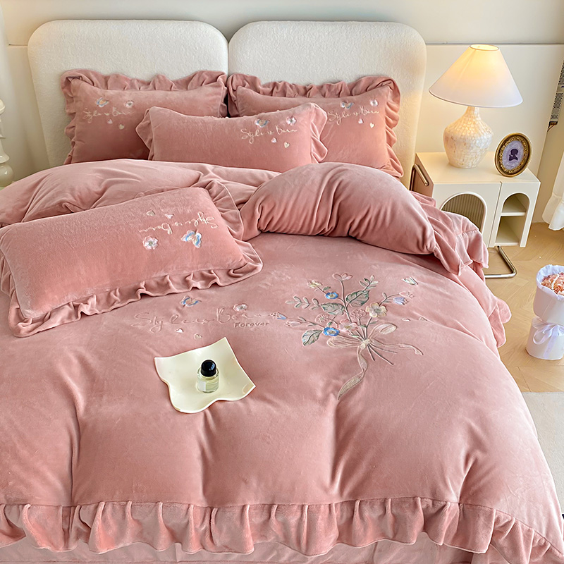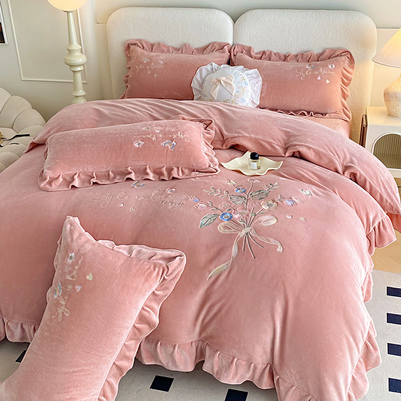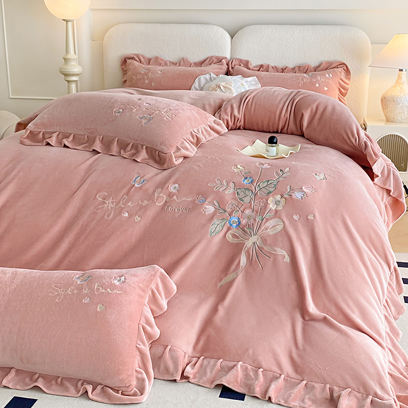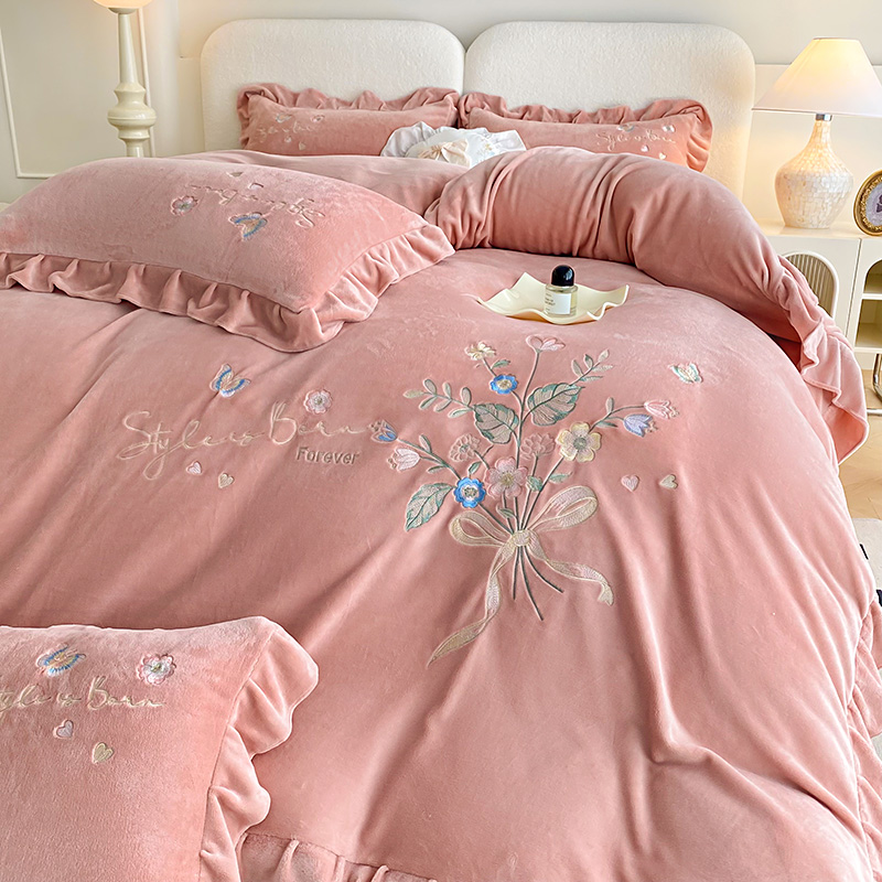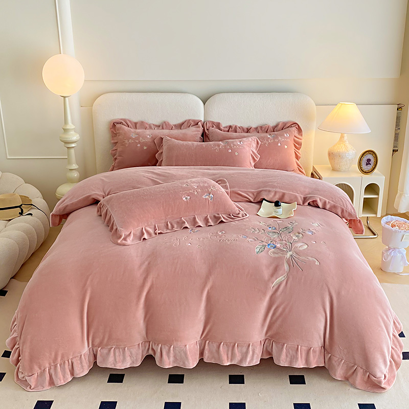 航途席业 2025新款高克重牛奶绒刺绣四件套-浪漫满屋 浪漫满屋-皮粉