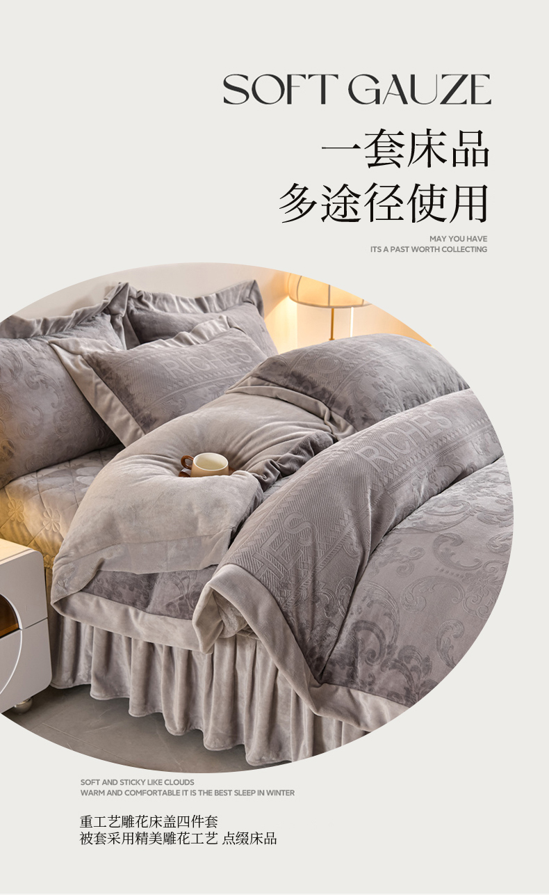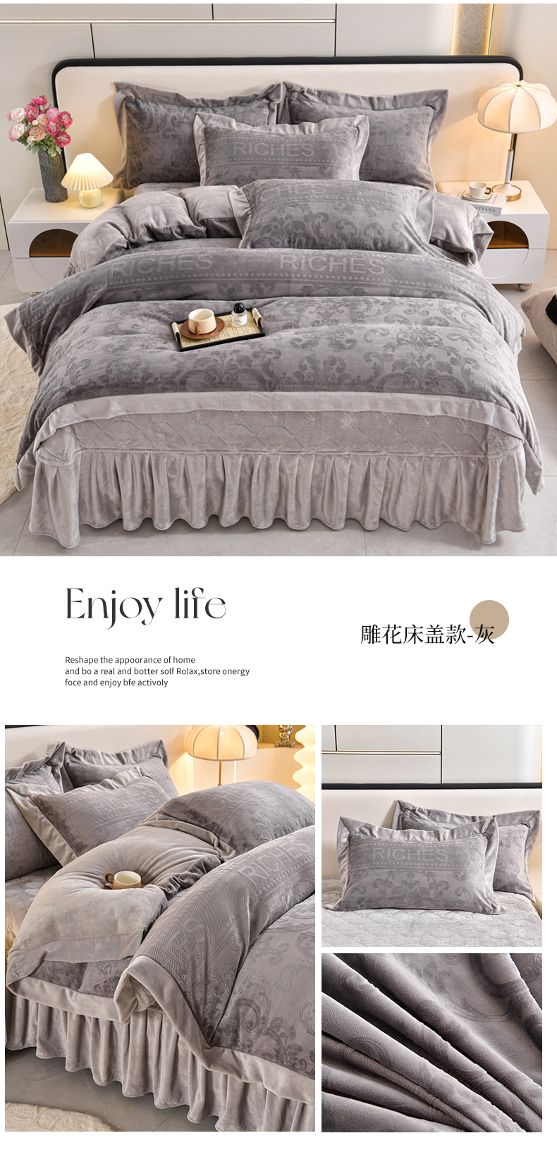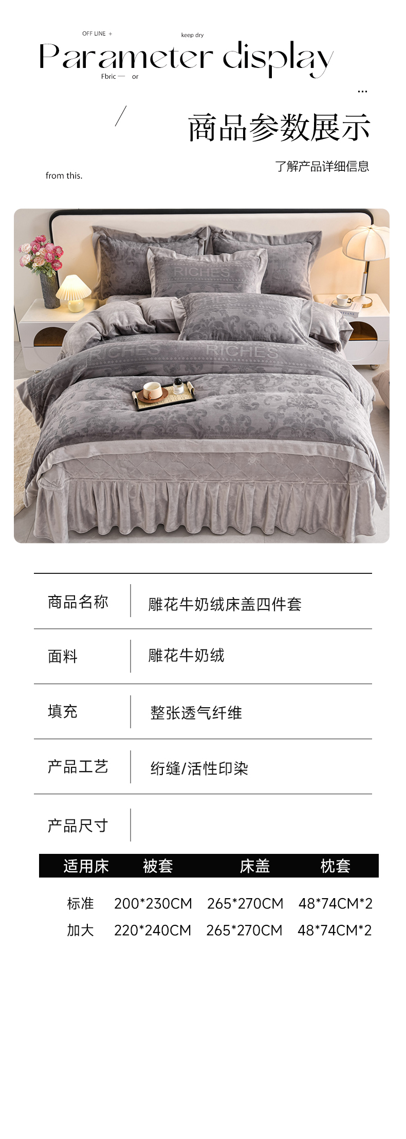 商品名称:馨梦缘 2025新款雕花床盖款四件套 雕花床盖款-爱意灰