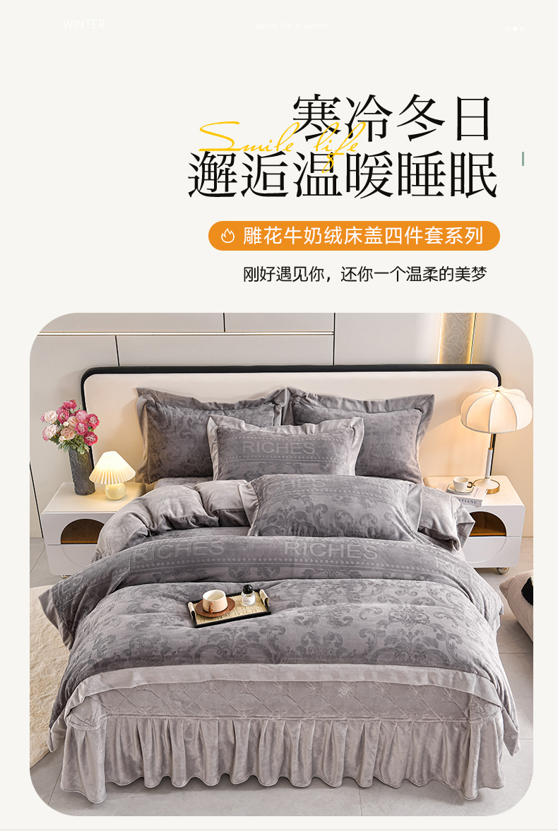 (总)馨梦缘 2025新款高克重加厚牛奶绒雕花床盖款四件套-控价228,雕花床盖款-爱意大红,雕花床盖款-爱意灰,雕花床盖款-爱意蓝,繁花-少女粉,欧式-象牙白,枫叶-奶油白,时尚-米白