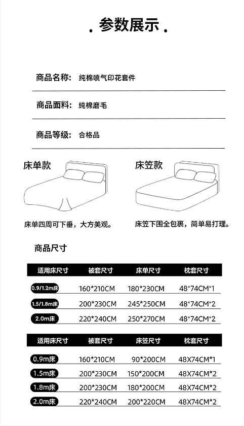0.9m床笠三件套被套160*210 | ¥78.00 |