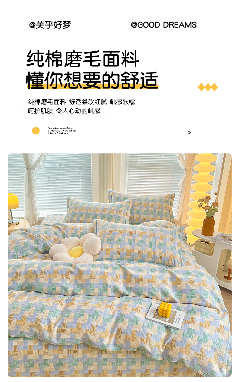 当前位置: 91家纺网 > 商品网购 > 床品套件 > 四件套 > 全棉普通四件套 > 优尚家纺 2025新款全棉磨毛纯棉喷气印花清新轻奢款四件套 清新款-林间织梦