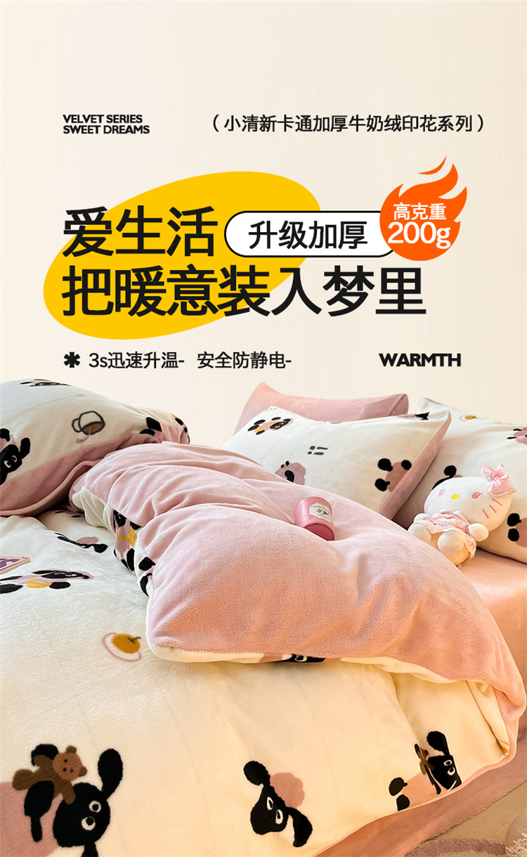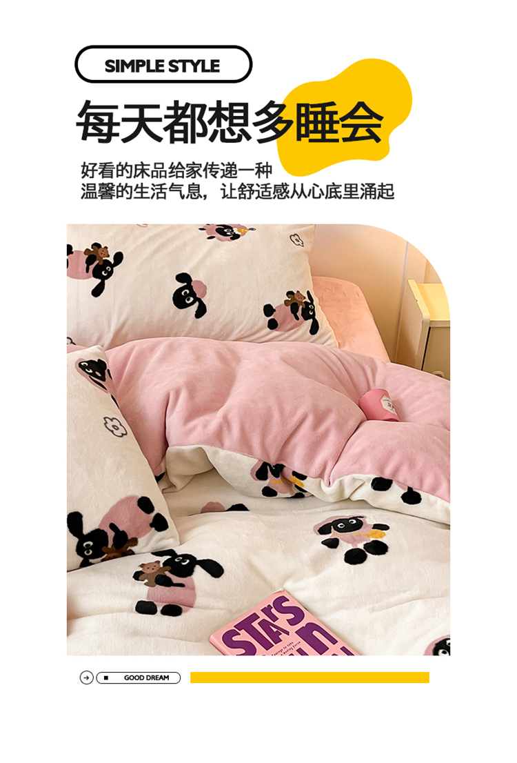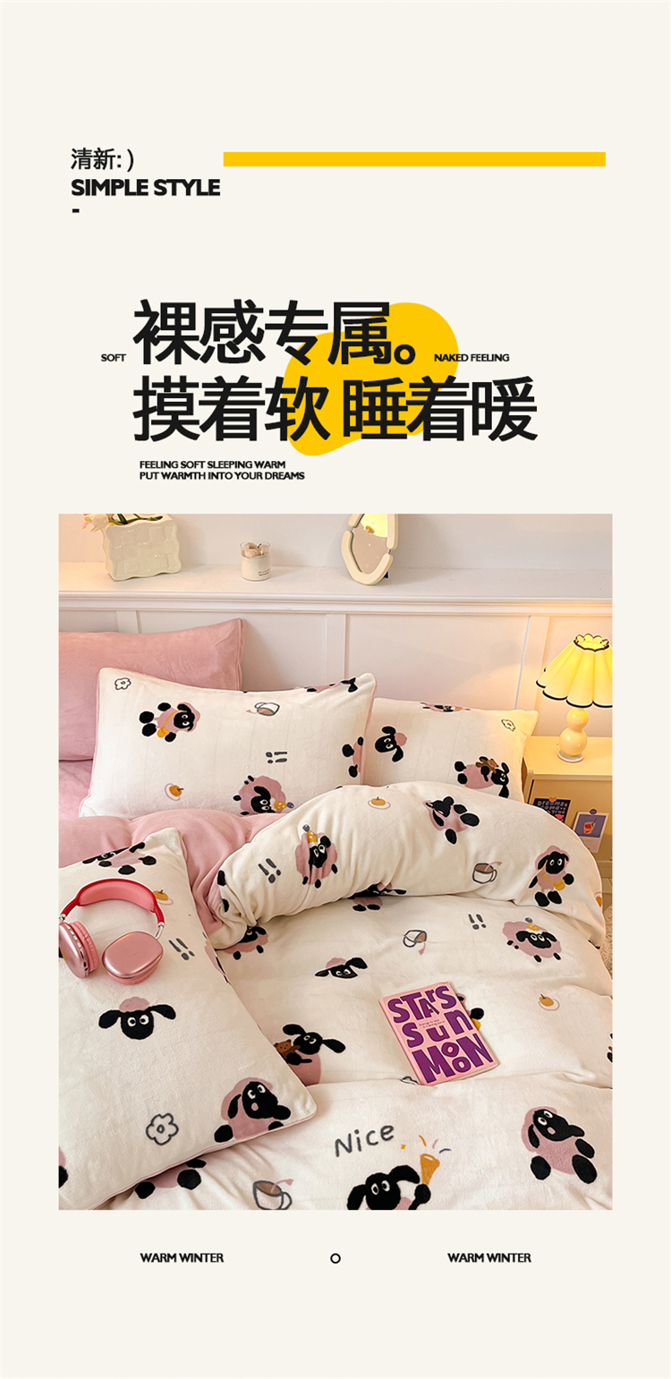 2024新款200g加厚防静电牛奶绒小清新四件套 绒-小羊泡芙