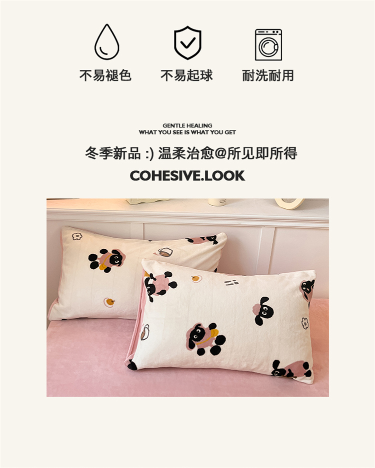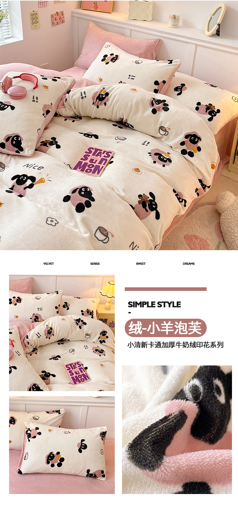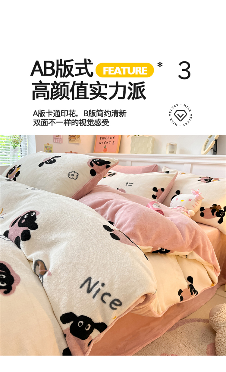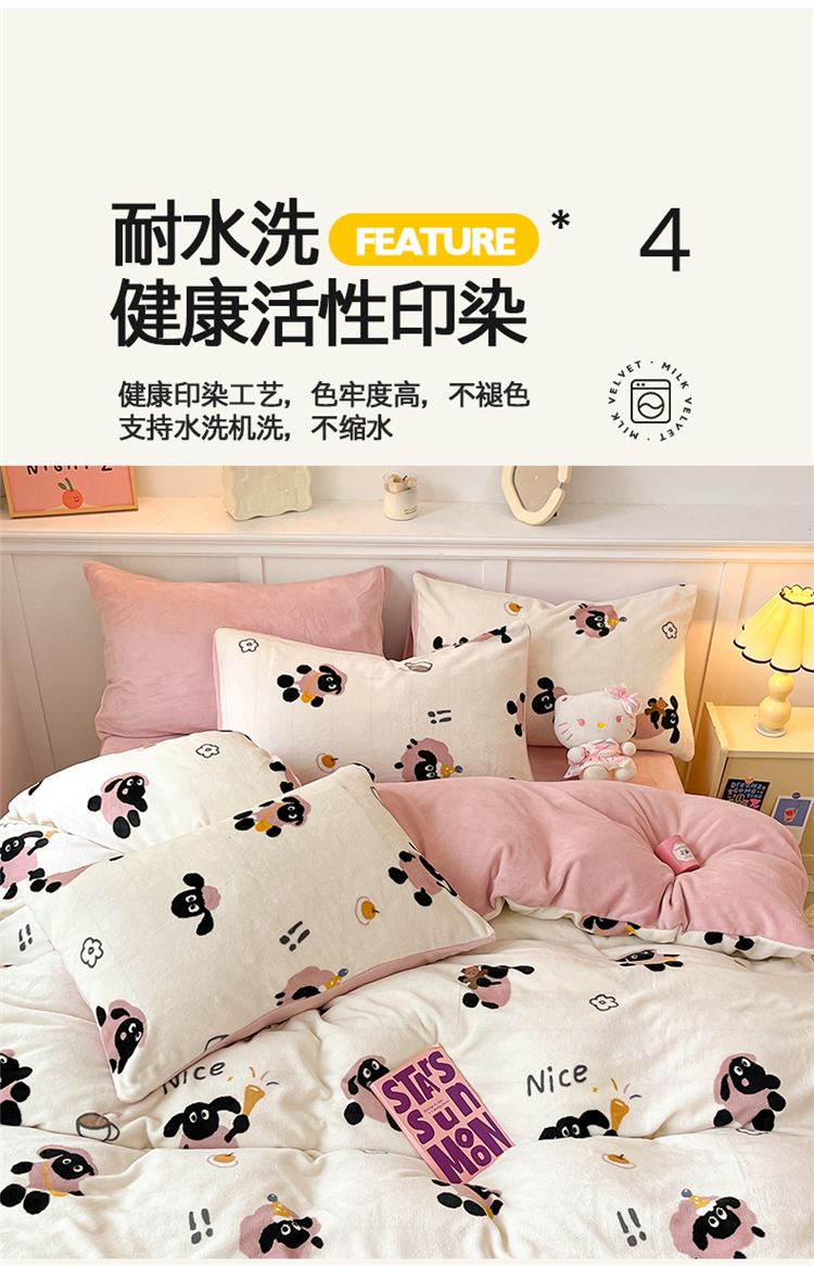 商品名称:2024新款200g加厚防静电牛奶绒小清新四件套 绒-小羊泡芙