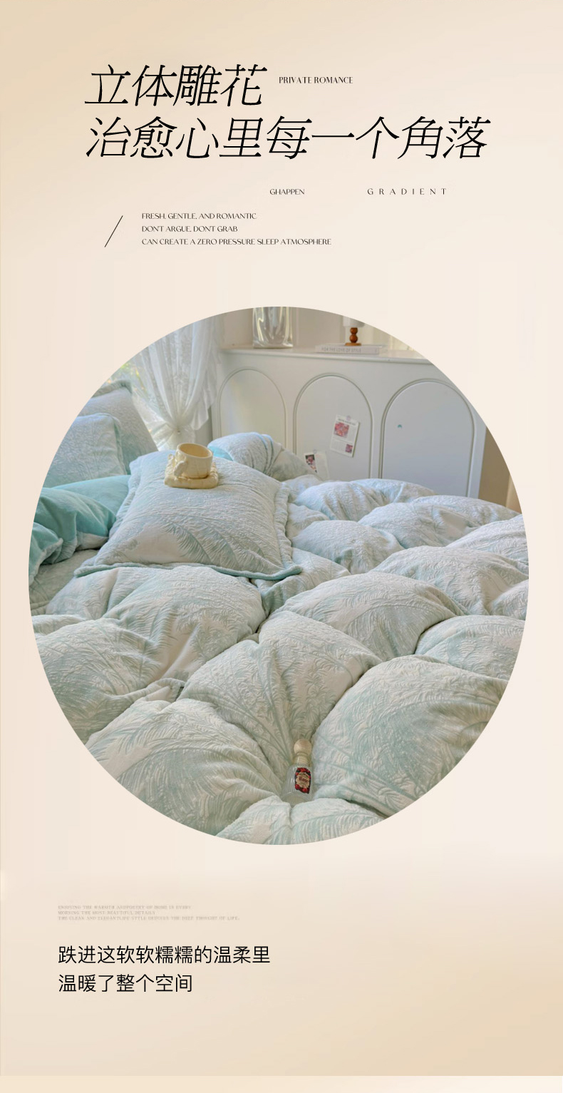(总)昊川家纺 2025新款小清新牛奶绒雕花图毛绒包边系列四件套,蝶影玫瑰-蓝,繁花朵朵,蕾丝公主,墨花如梦,暖杏花语,浅草听风,浅蓝叶梦,且听风吟-浅绿,如梦令-豆沙,如梦令-绿,山茶花-咖,碎花漫语,甜心玫瑰,织梦-咖,竹蝶伴眠,竹影清眠,紫梦絮语