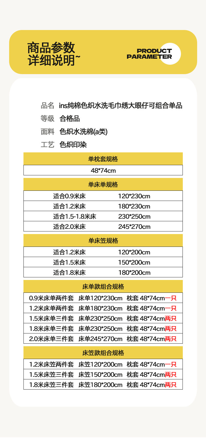 床单/床笠尺寸 7