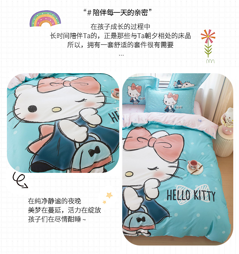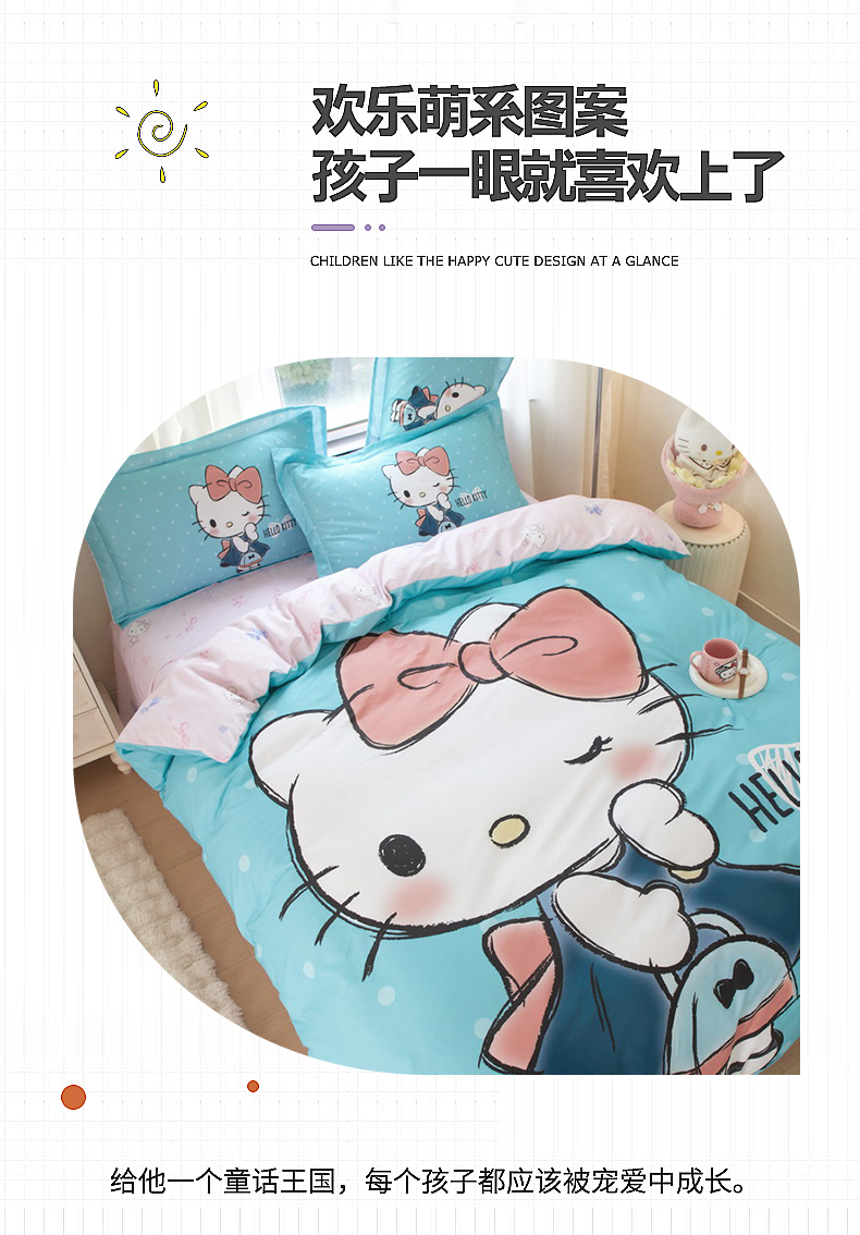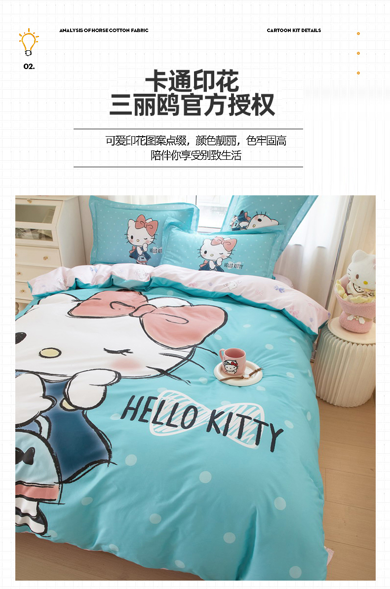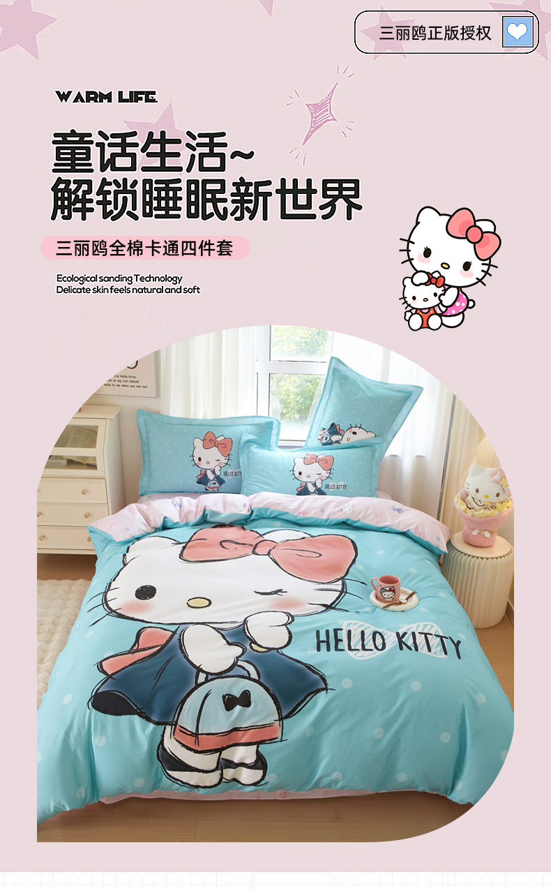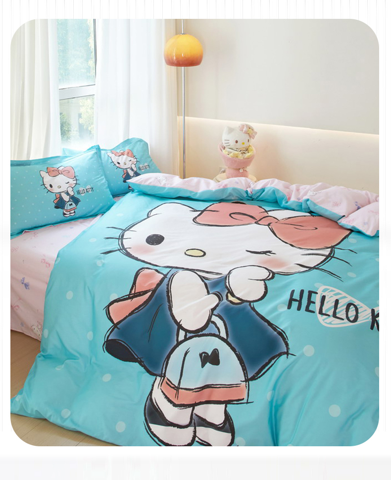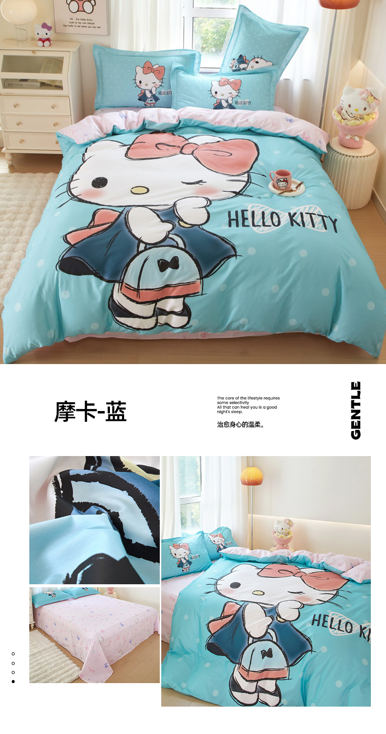 商品名称:蘭菲家纺 2024新款全棉大版卡通三丽鸥四件套 摩卡-蓝