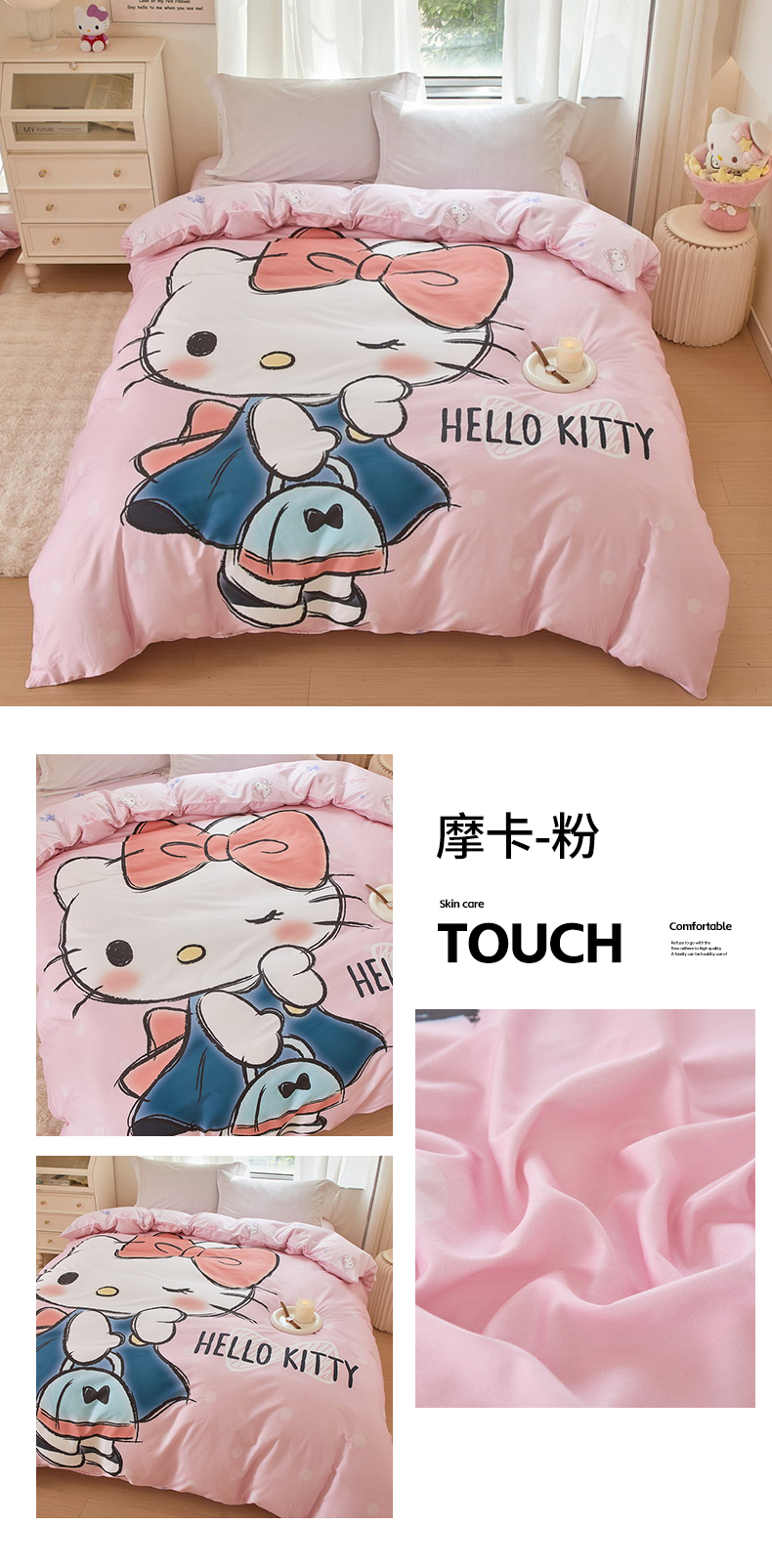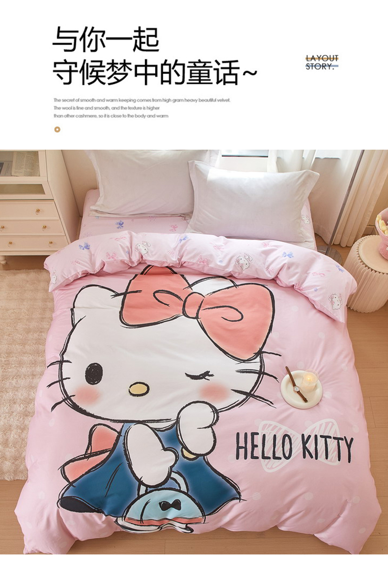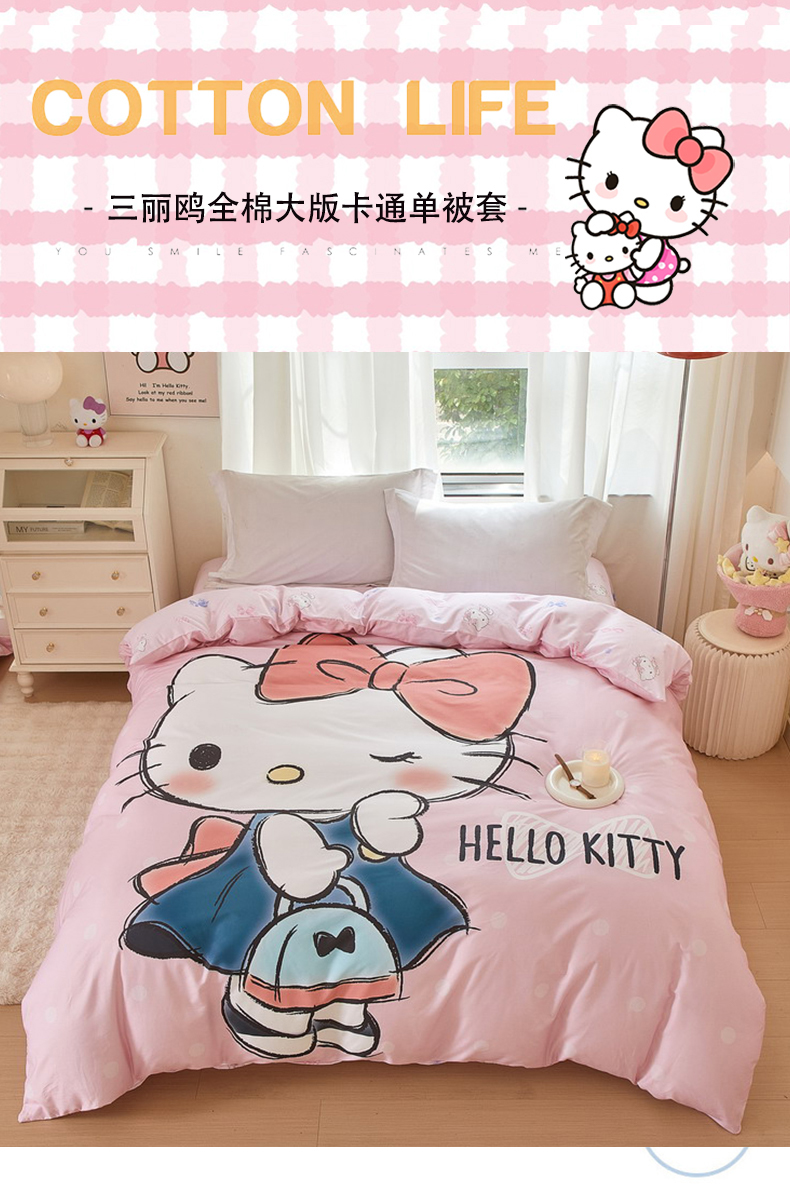 商品名称:蘭菲家纺 2024新款全棉大版卡通三丽鸥单品被套 摩卡-粉