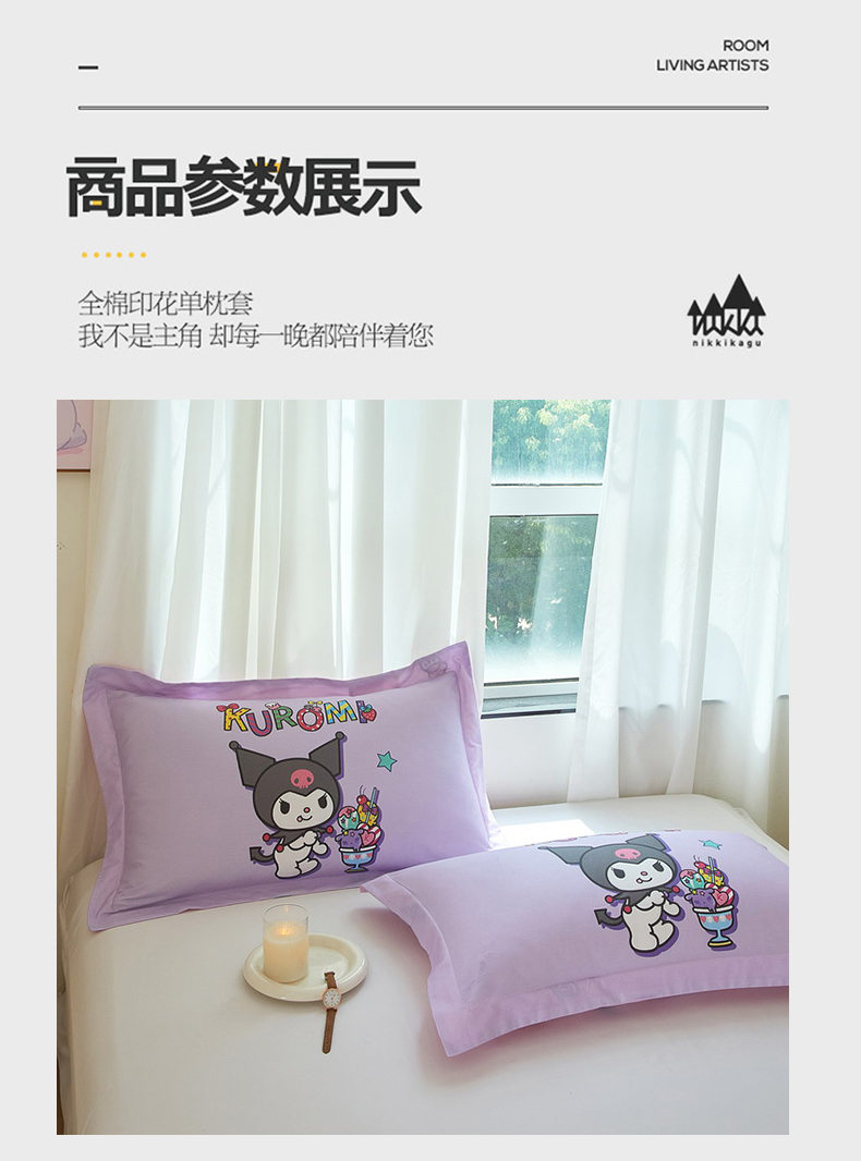 商品名称:蘭菲家纺 2024新款全棉大版卡通三丽鸥单品枕套 果茶