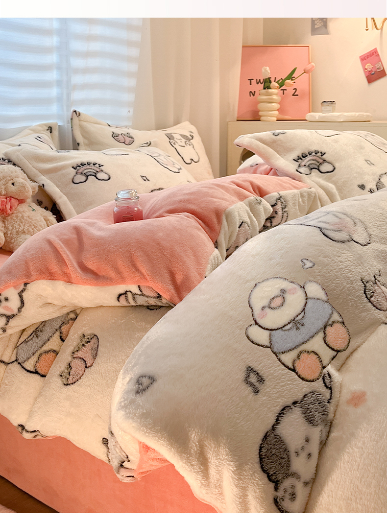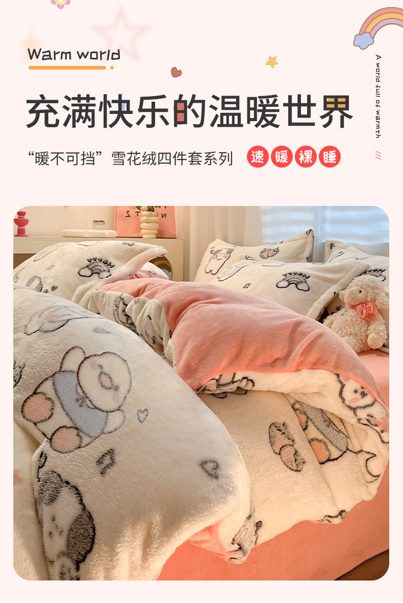 当前位置: 91家纺网 > 商品网购 > 床品套件 > 四件套 > 其它四件套 > 韩巢家纺 2024新款加厚雪花绒印花四件套-风格一(提供卖家秀) 小伙伴