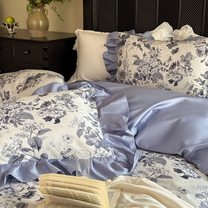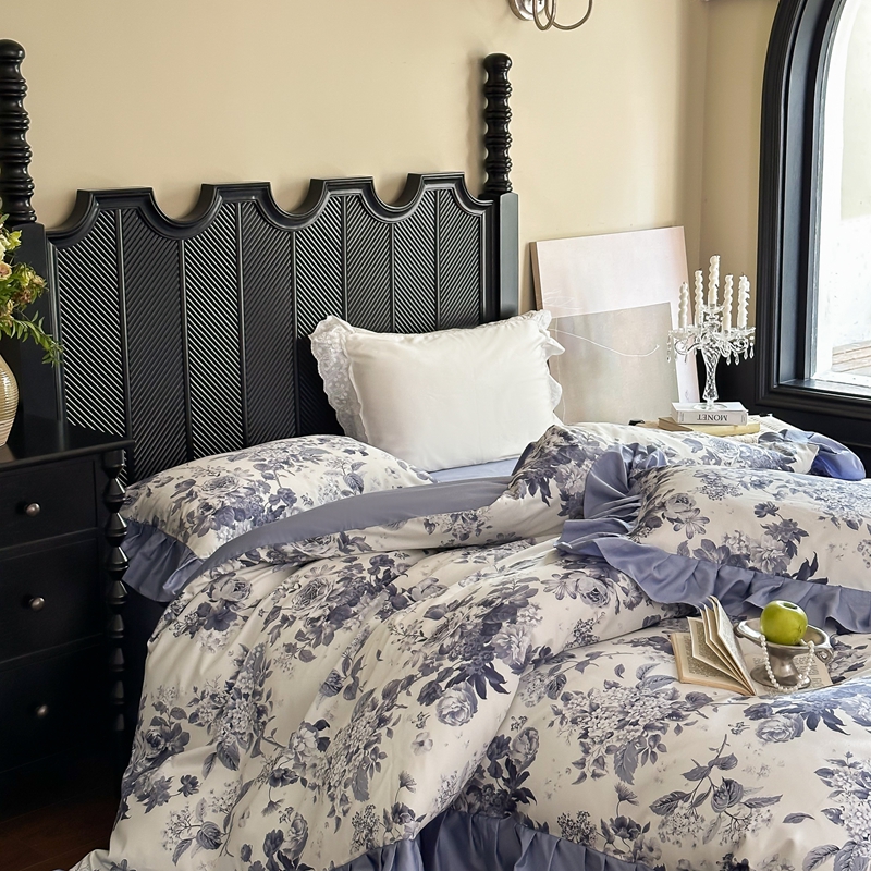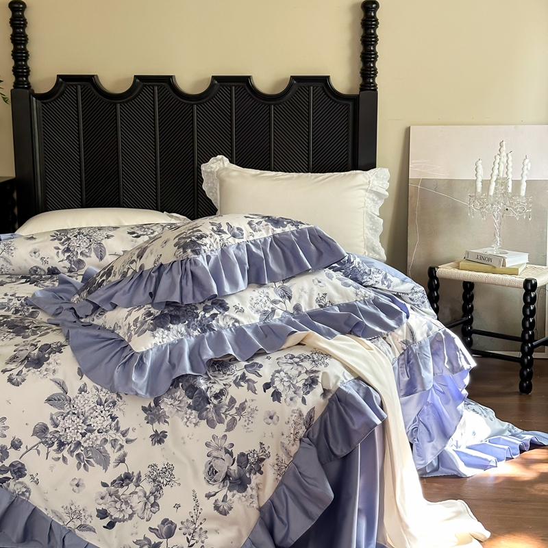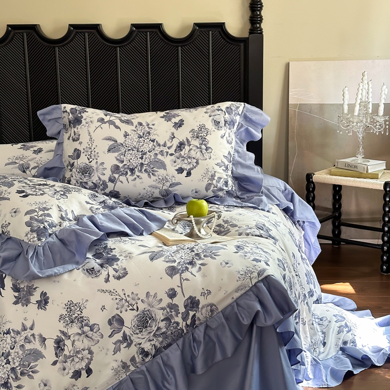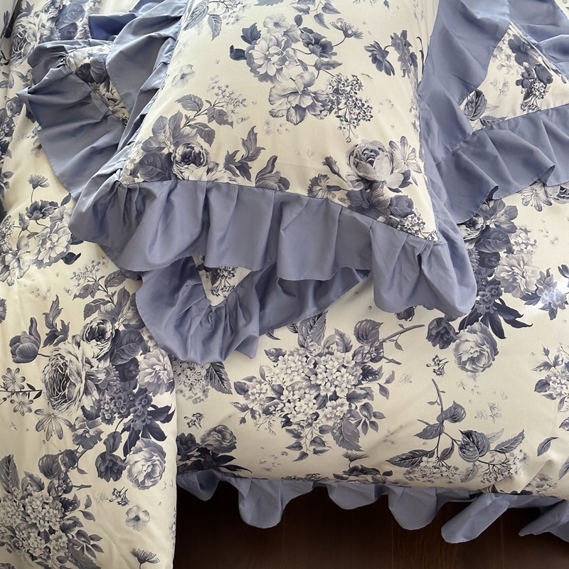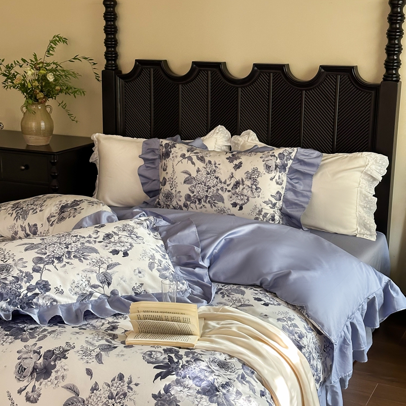 (总)窝米 2025新款数码印花100支长绒棉纯棉工艺花边款四件套-青花瓷,青花瓷