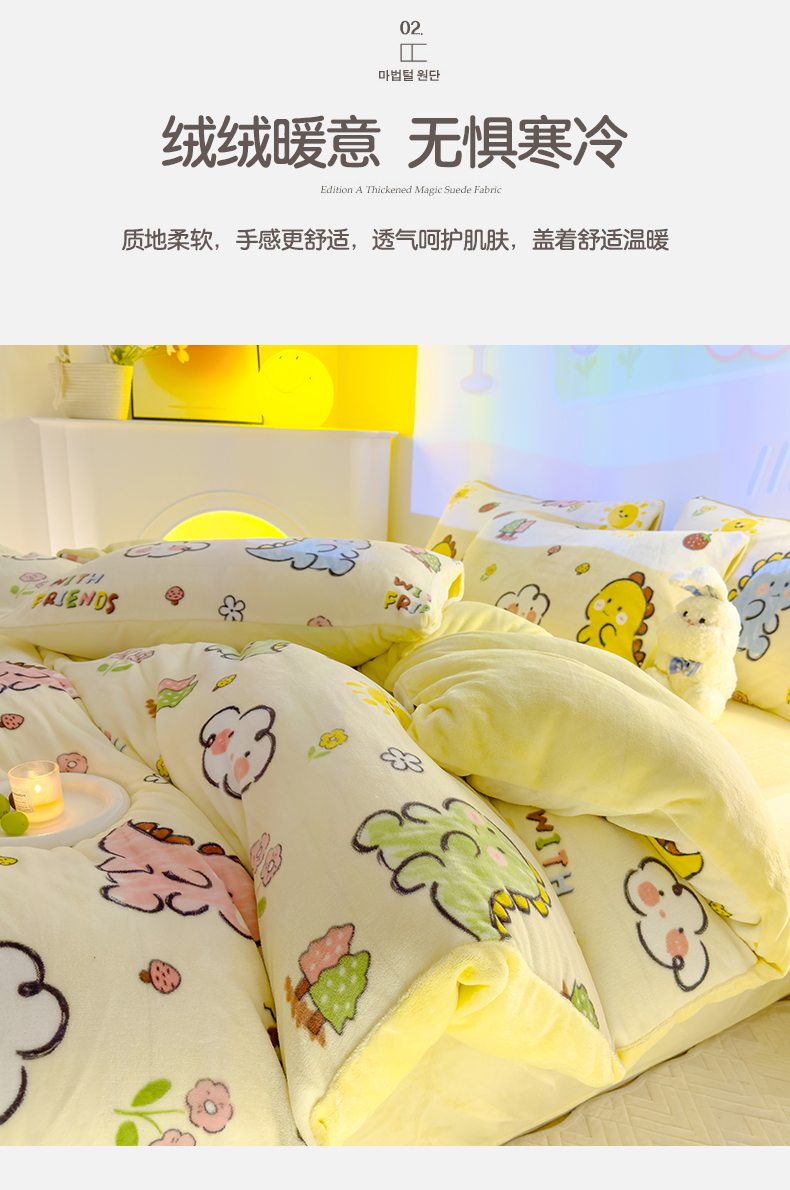 当前位置: 91家纺网 > 商品网购 > 床品套件 > 四件套 > 牛奶绒四件套 > 2024新款抗静电加厚牛奶绒印花四件套 淘气恐龙