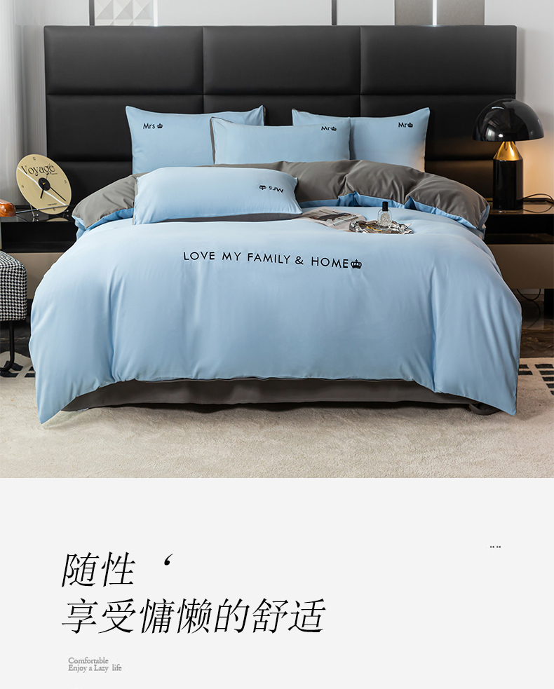 (总)梓依家纺 2024新款AB版磨毛刺绣四件套,天空蓝,宝石蓝,果绿,青石绿,米白,宾利蓝,深灰,浅灰,粉豆沙,卡其,玫红