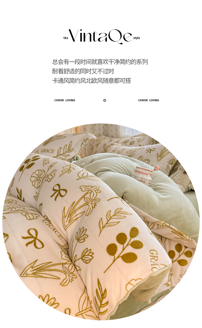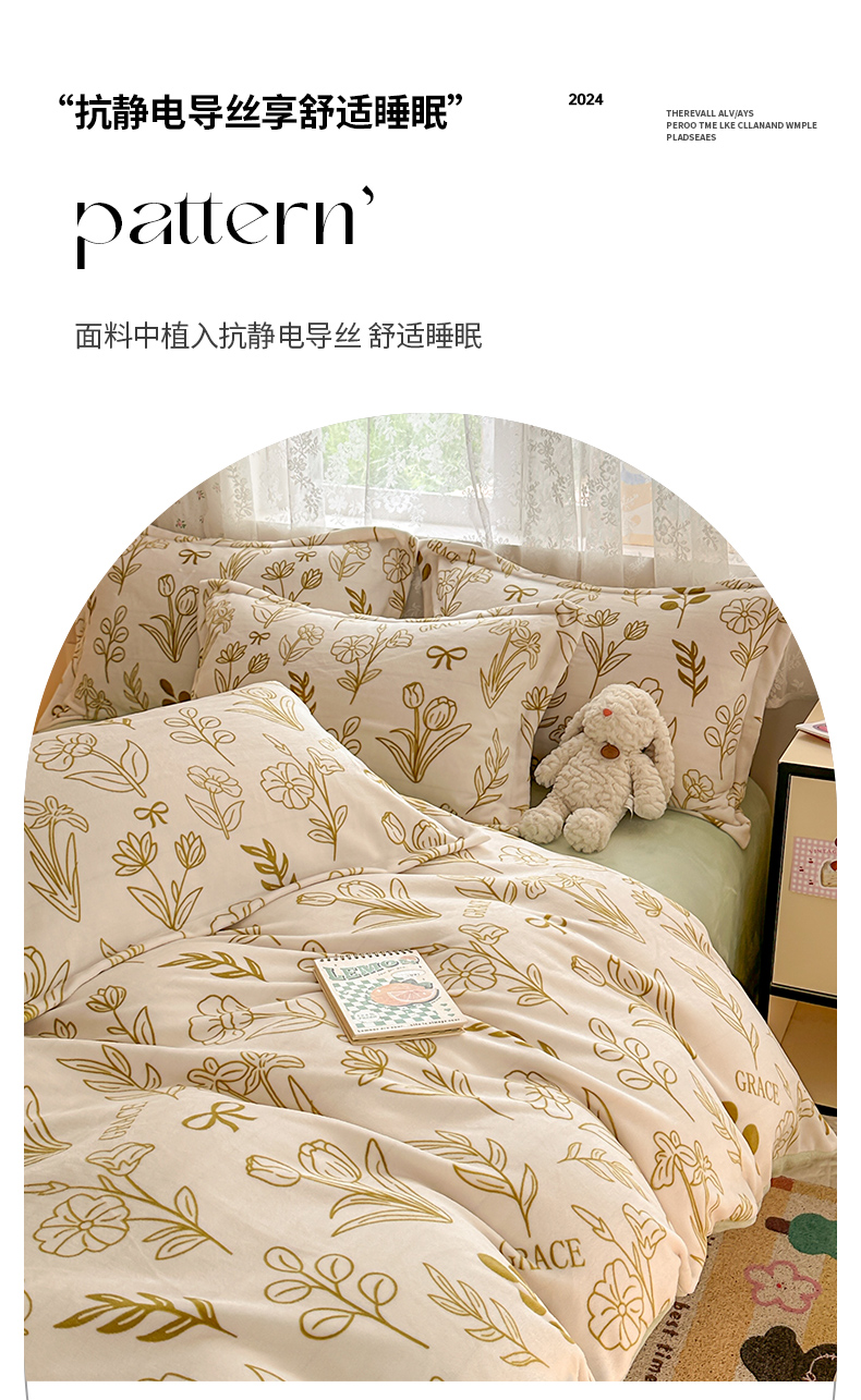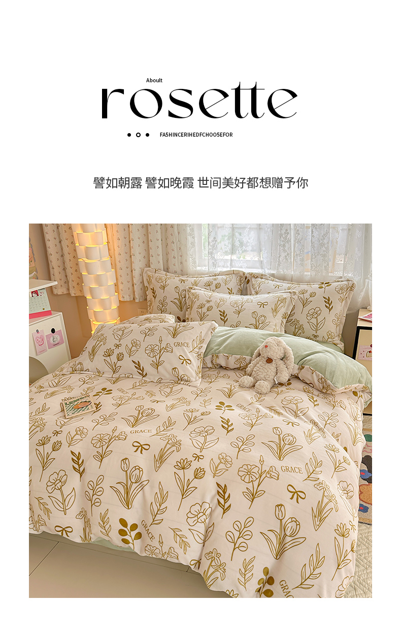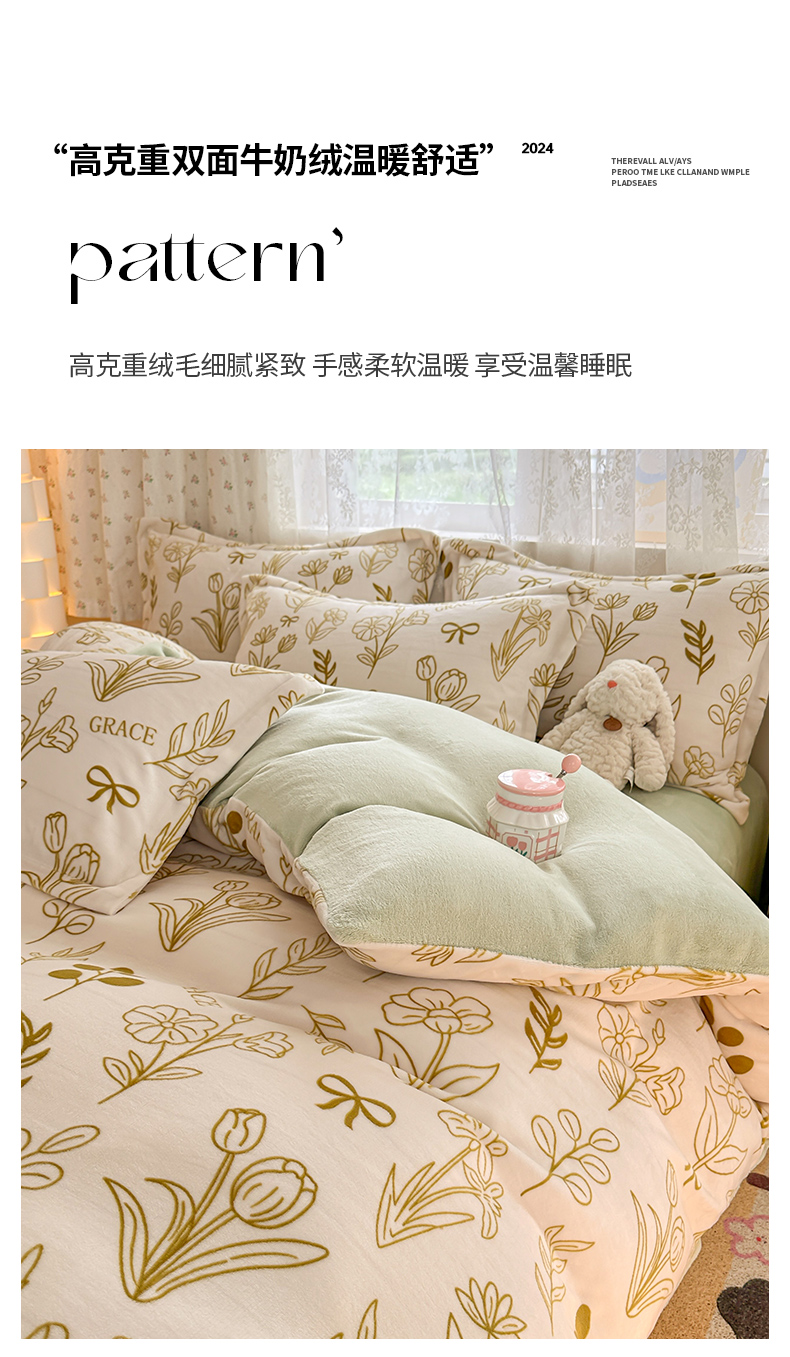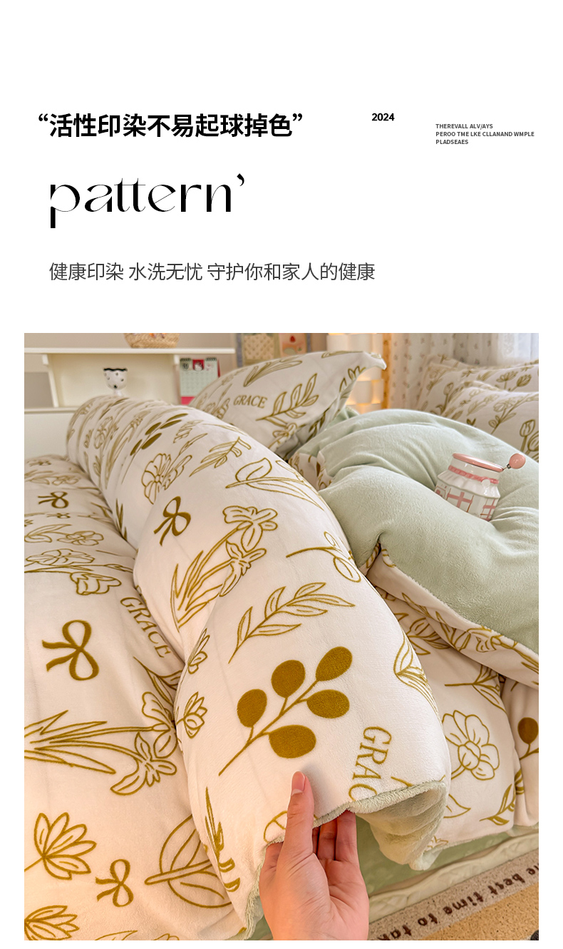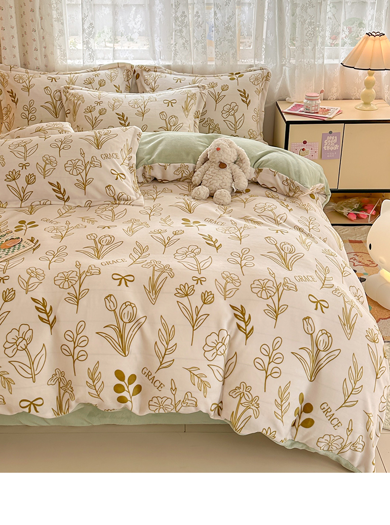 当前位置: 91家纺网 > 商品网购 > 床品套件 > 四件套 > 牛奶绒四件套 > 全季家居 2024新款A类小清新印花牛奶绒高克重加厚保暖四件套 绿茵