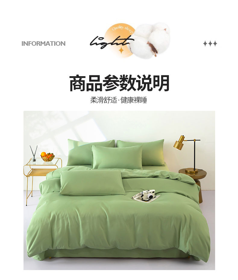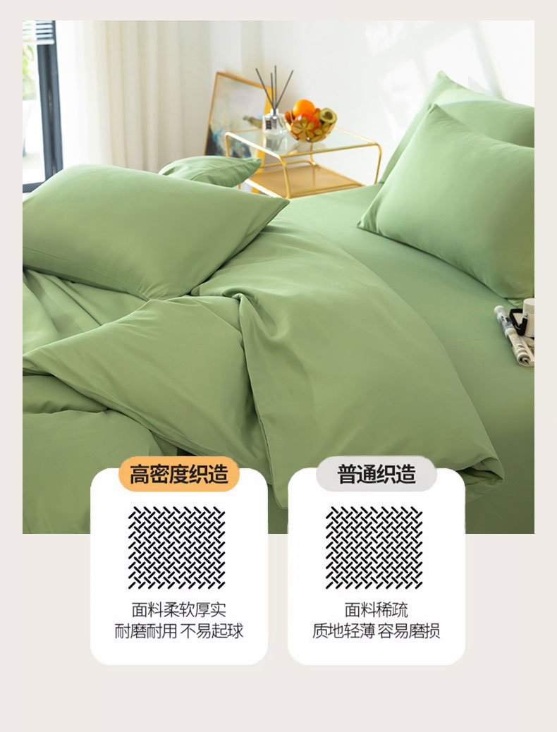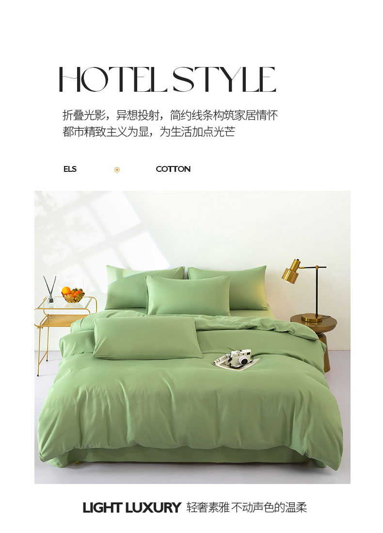 商品名称:梓依家纺 2024新款亲肤磨毛纯色拼色轻奢系列四件套 果绿
