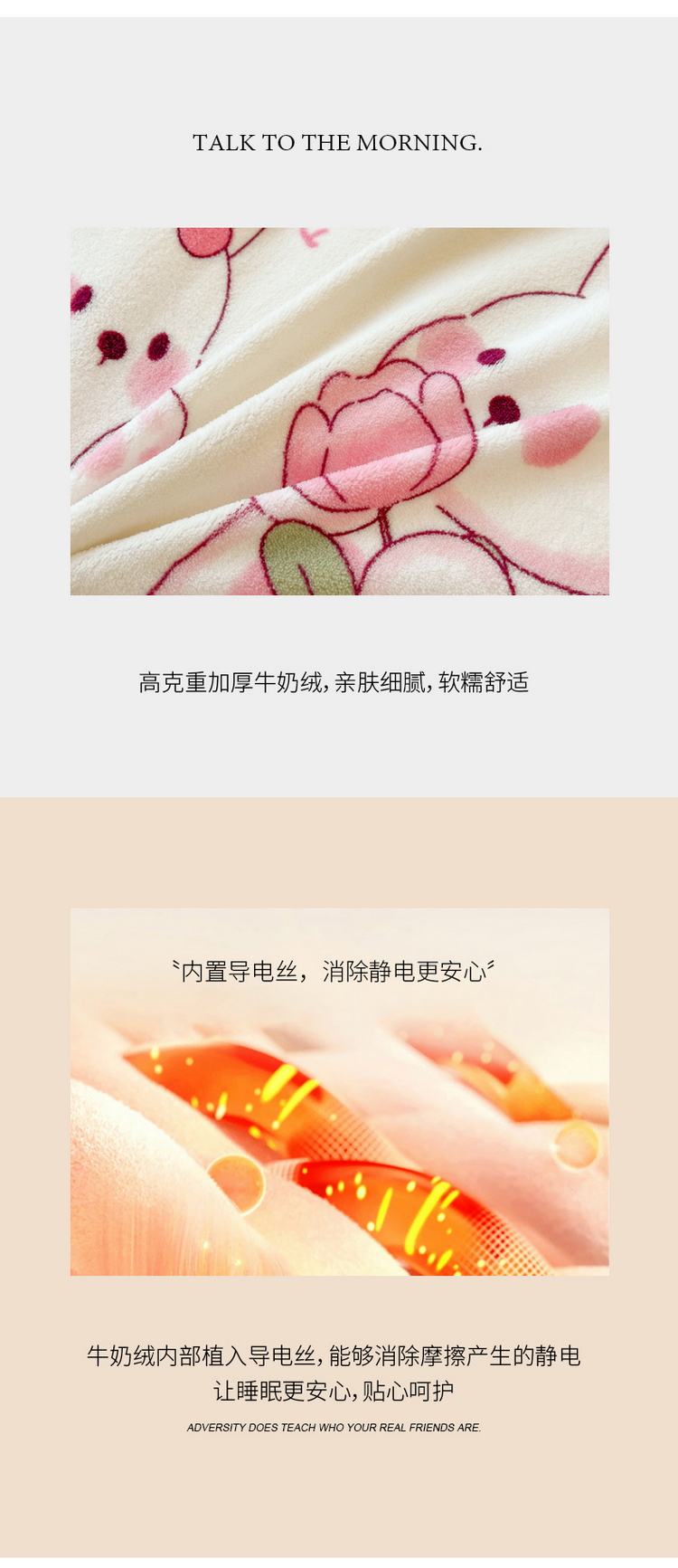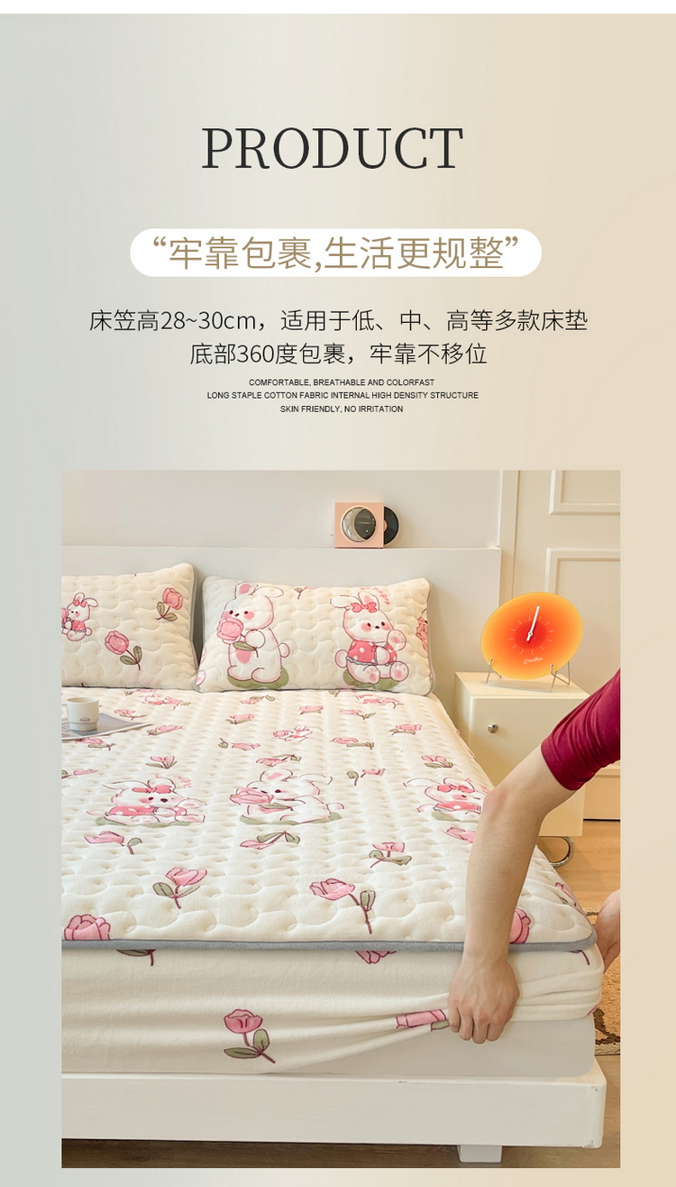 商品名称:2024秋冬A类牛奶绒加厚夹棉床笠+牛奶绒被套四件套浪漫小兔