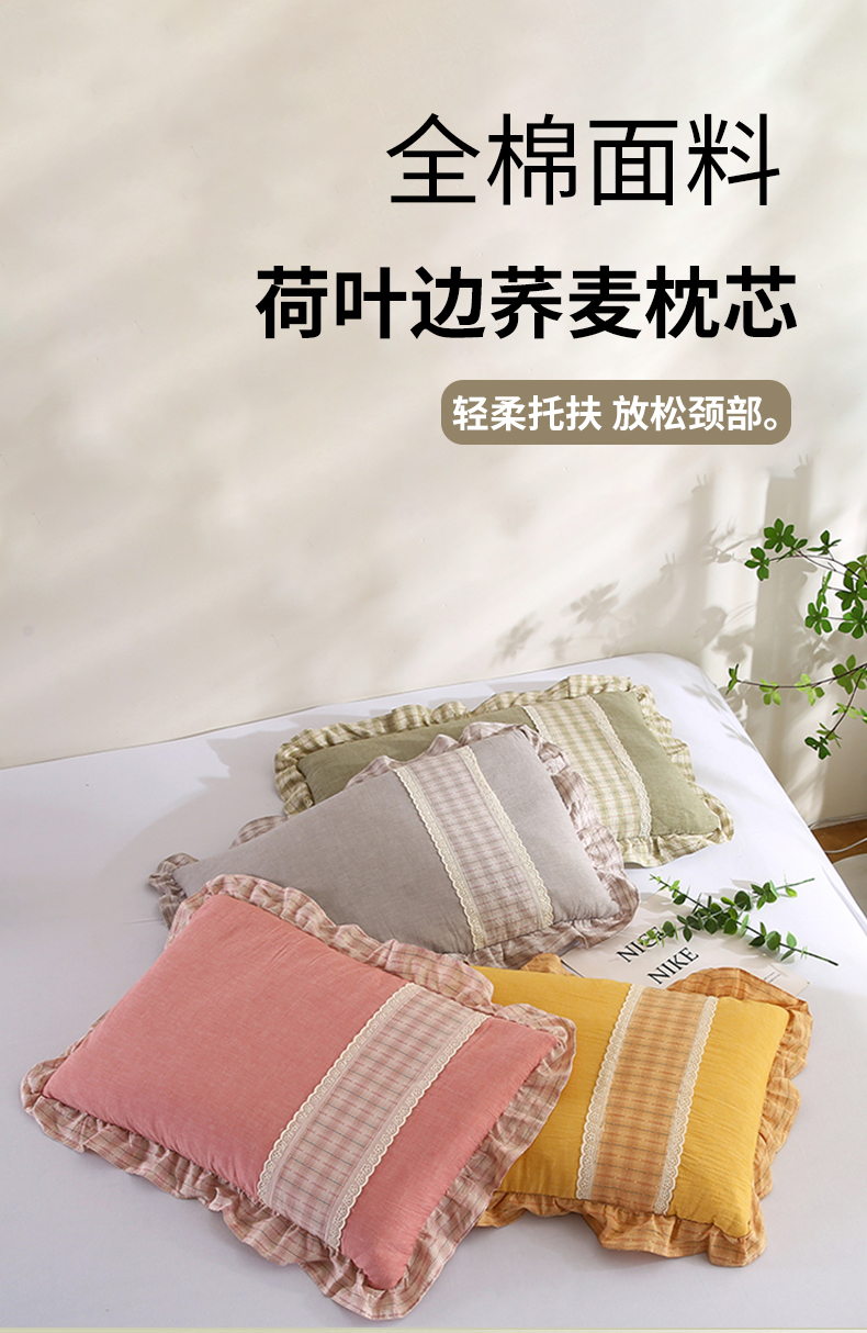 商品名称:(总)蔻眠 2024新款韩式荷叶边全棉荞麦枕芯护颈椎枕头