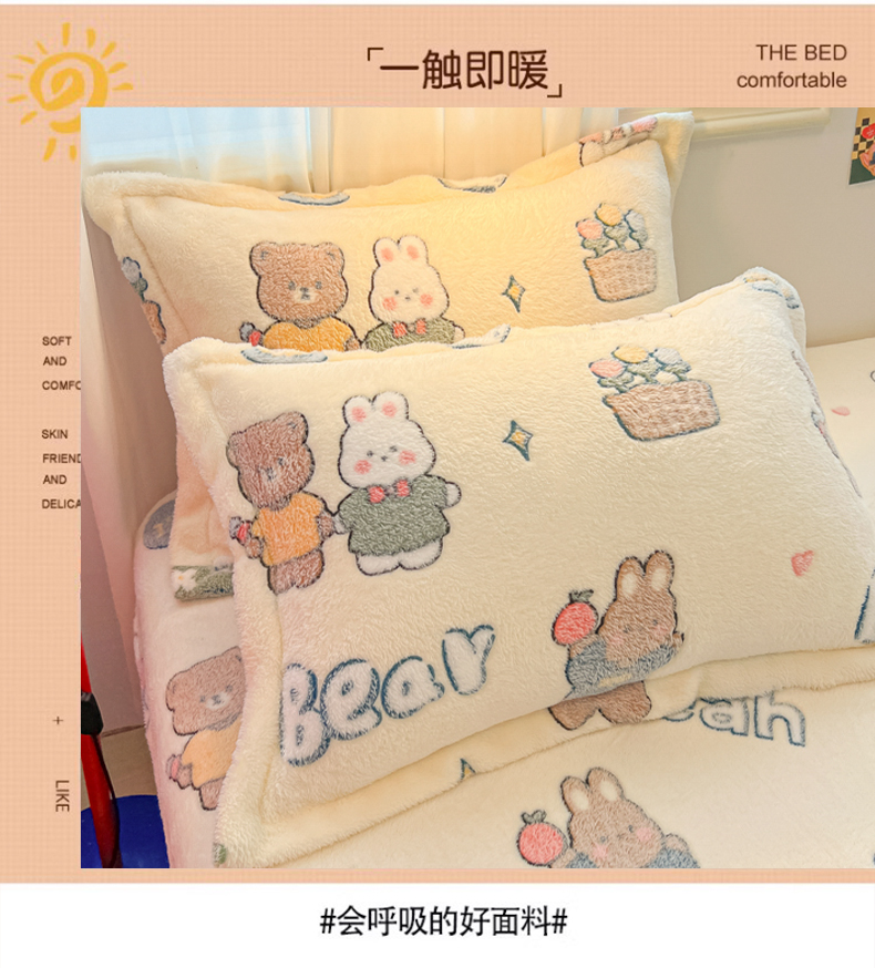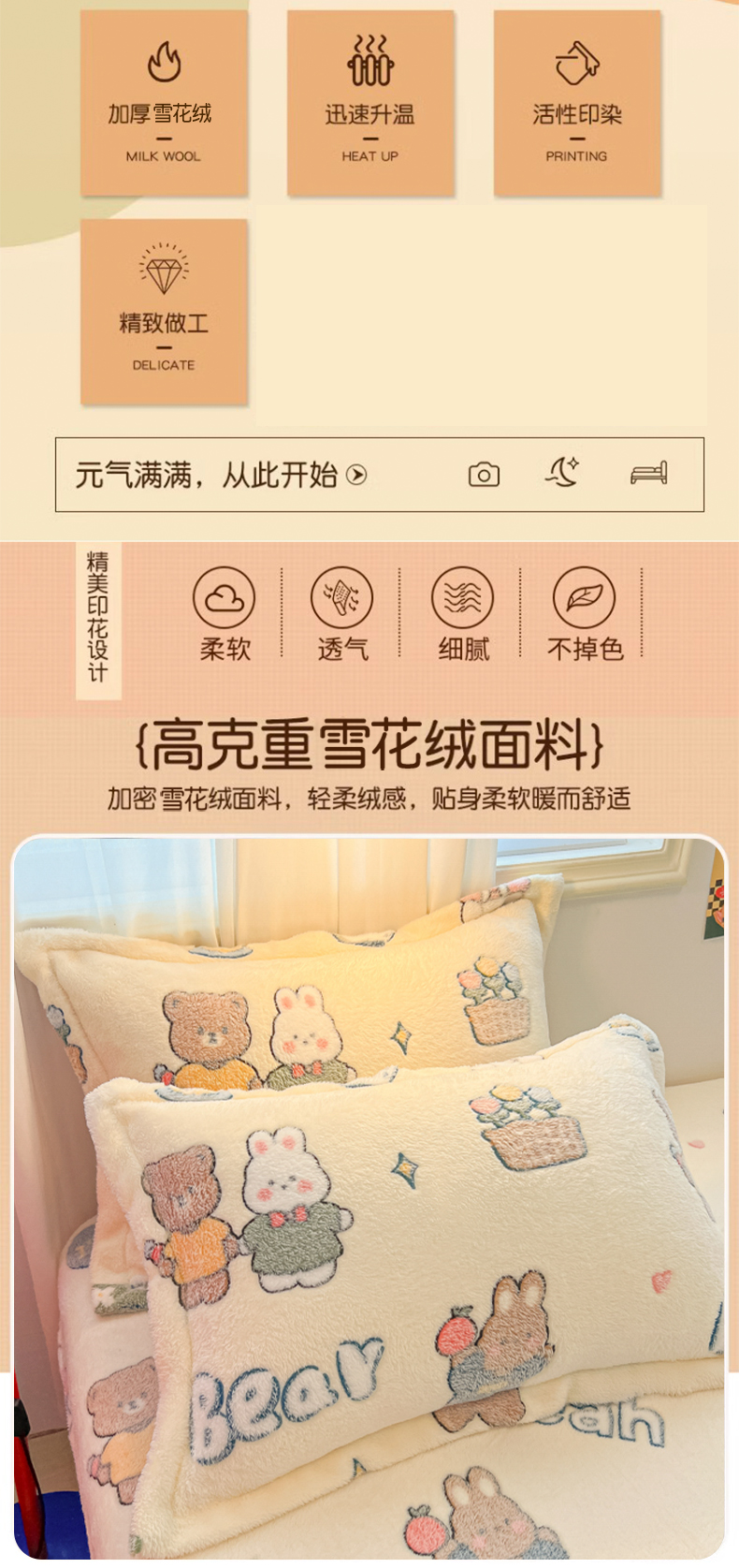 韩巢家纺 2024新款雪花绒枕套一对装 快乐心情