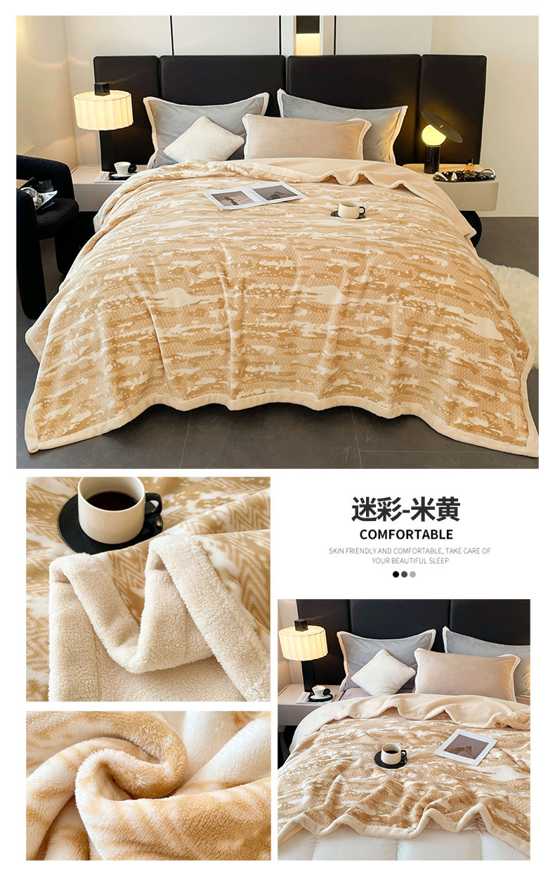 凯轩毛毛毯毯子网销专供 2024新款雪绒棉四季毛毯毯子盖毛毯毯子毛毯毯子子 迷彩-米黄
