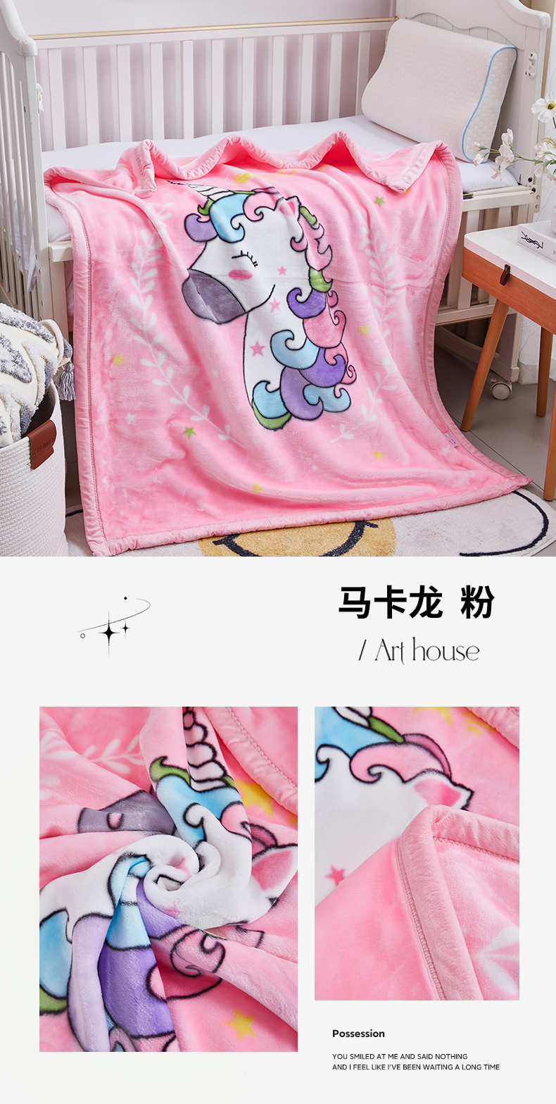 商品名称:凯轩毛毛毯毯子网销专供 2024新款加厚保暖儿童印花云毛毯毯子系列 马卡龙 粉