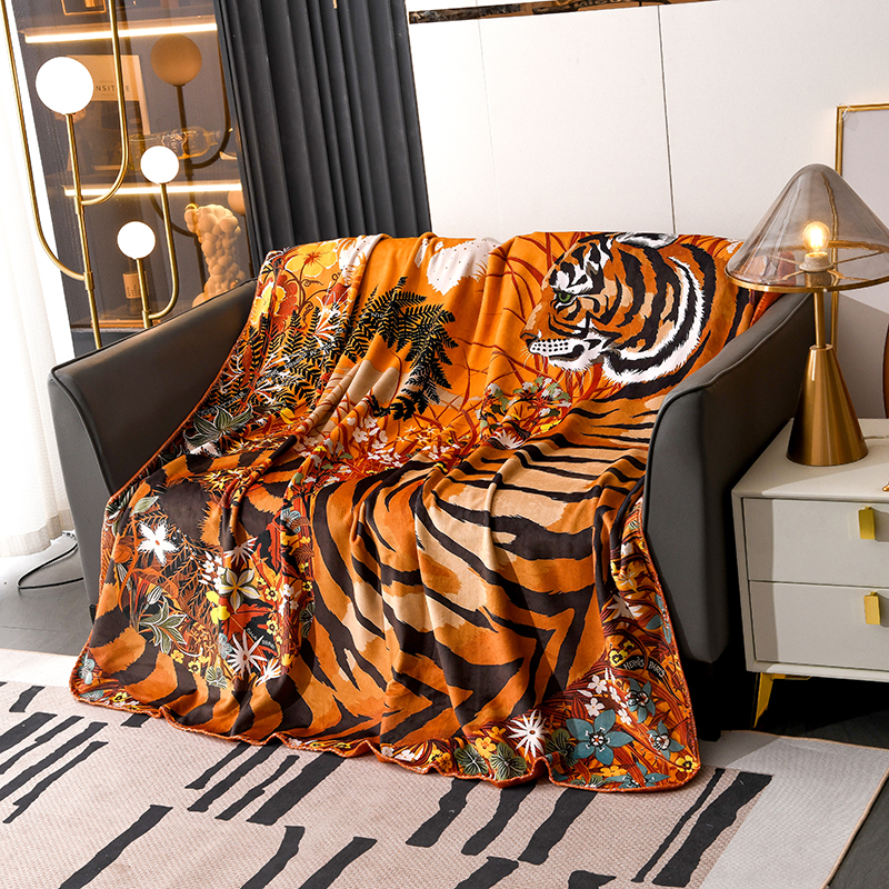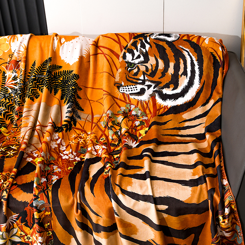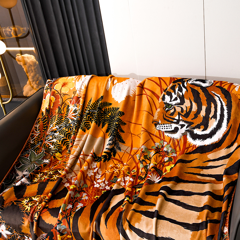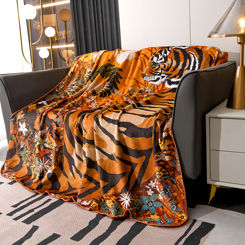 爵仕 2024高档锦狐绒毛毯复合毯奢华复古绒毯爱马风格 虎