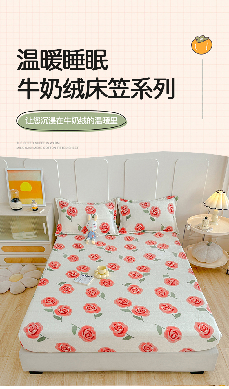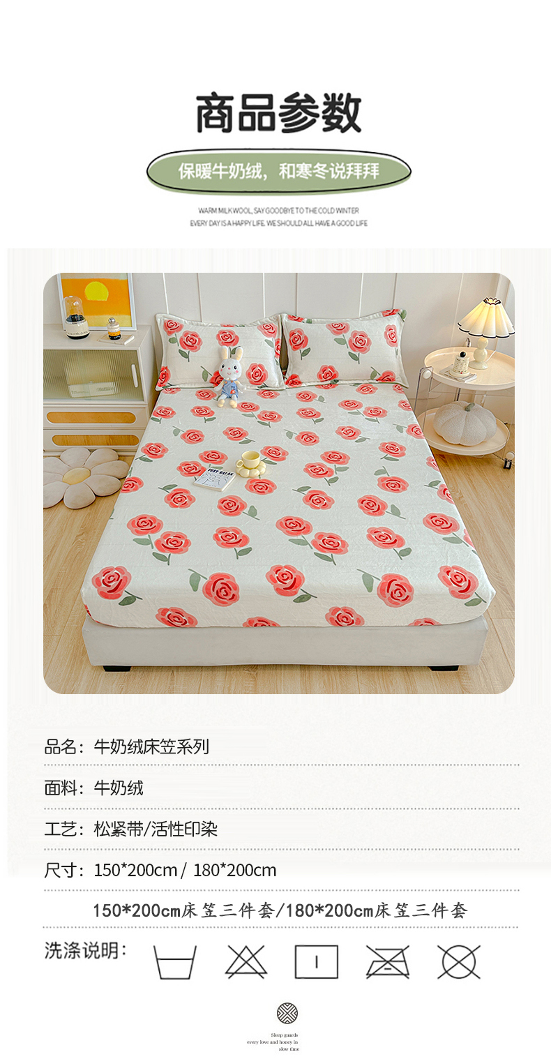 商品名称:卡普二店 2024新款牛奶绒印花单床笠 柔伊