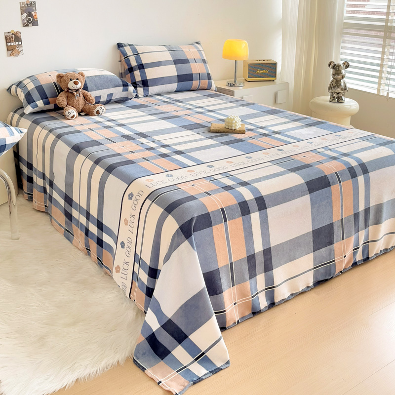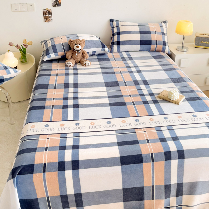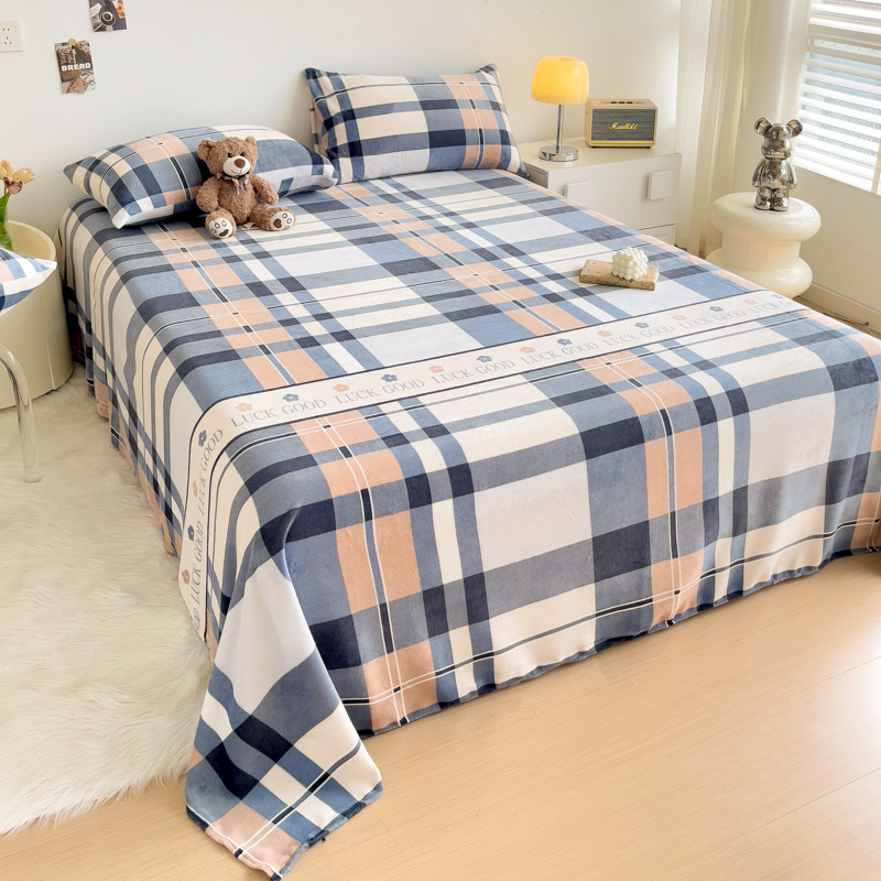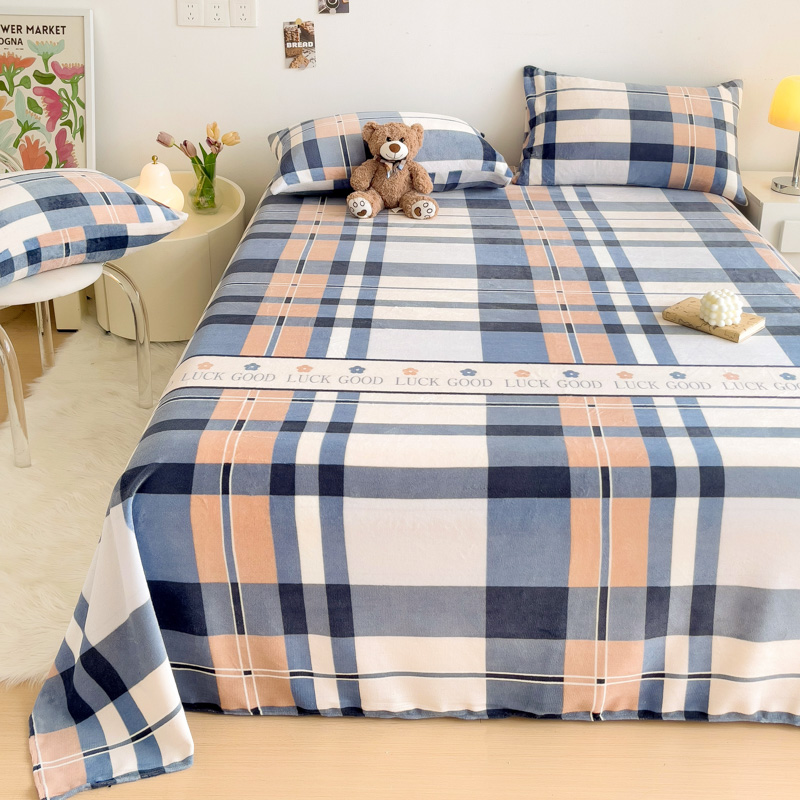 商品名称:艾橙家纺 2024新款A类加厚牛奶绒印花床单 五色格