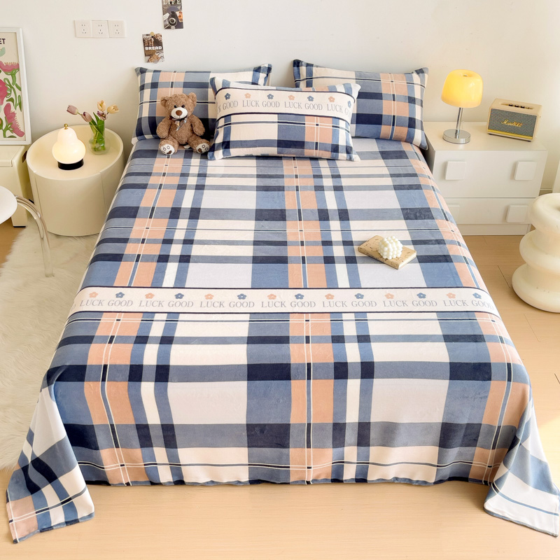 艾橙家纺 2024新款A类加厚牛奶绒印花床单 五色格