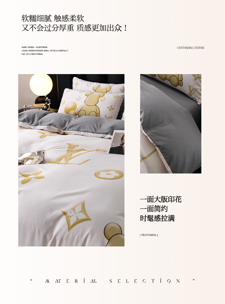 (总)色鬼布艺高端家居主号 2025新款轻奢亲肤纯棉数码印花网红热款四件套,豹纹香,白金V,白香花,大H,黑白迪,黑白V,灰迪,咖古,克莱因,慕斯小姐,山茶花,星空