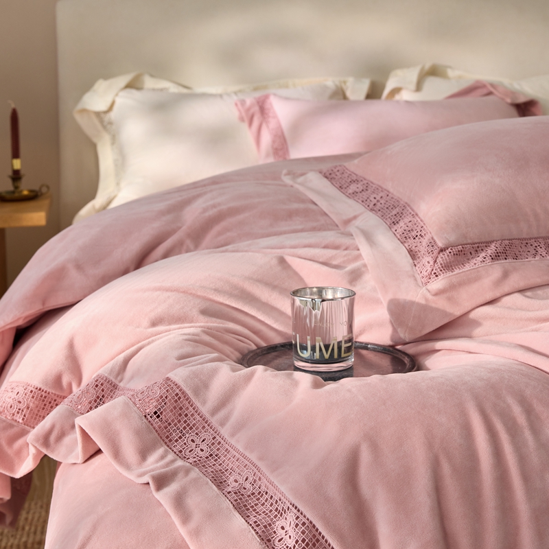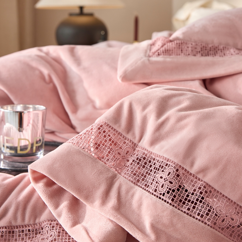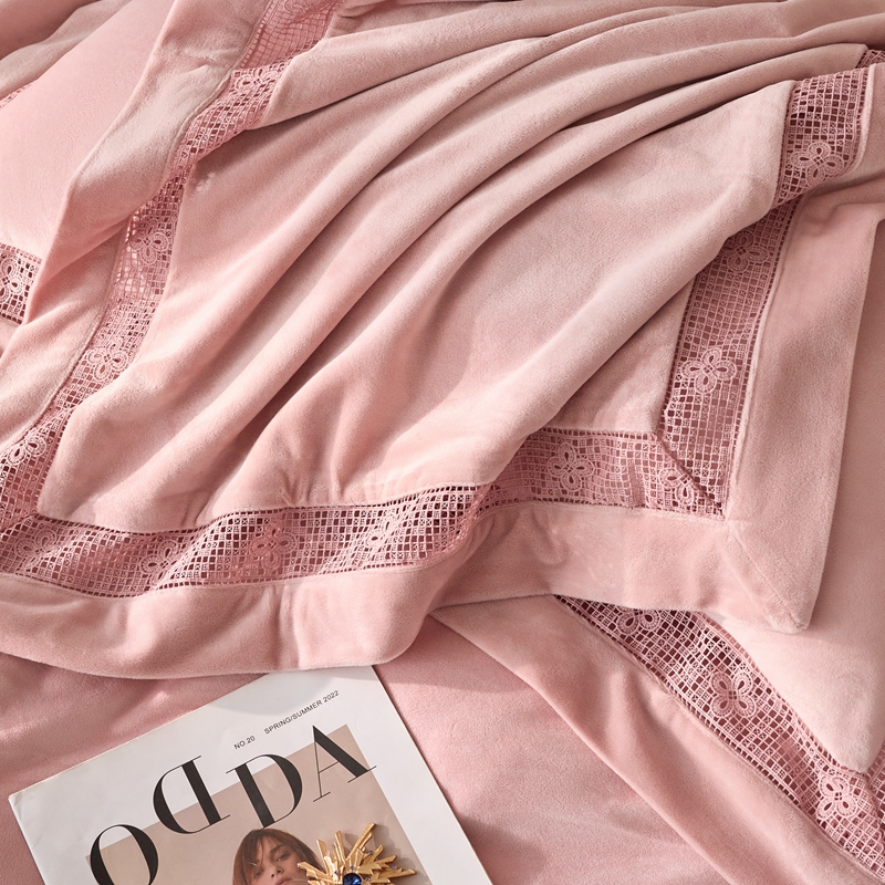 商品名称:时亿家居 2024新款300g婴肤绒四件套-爵士系列 爵士 心粉