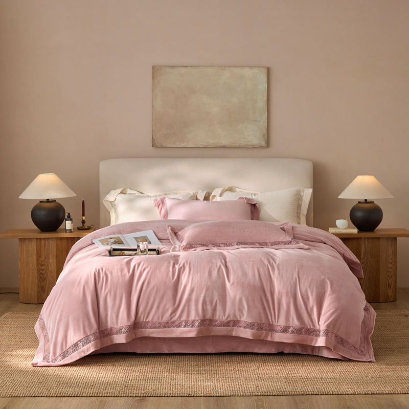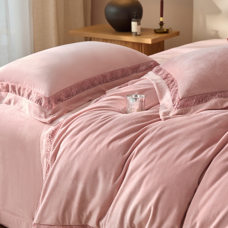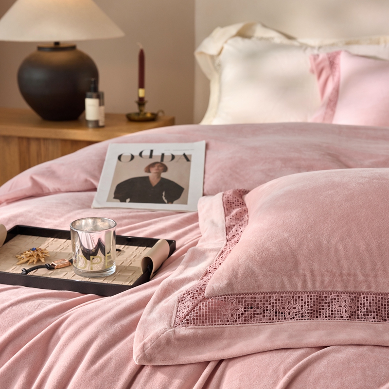 时亿家居 2024新款300g婴肤绒四件套-爵士系列 爵士 心粉