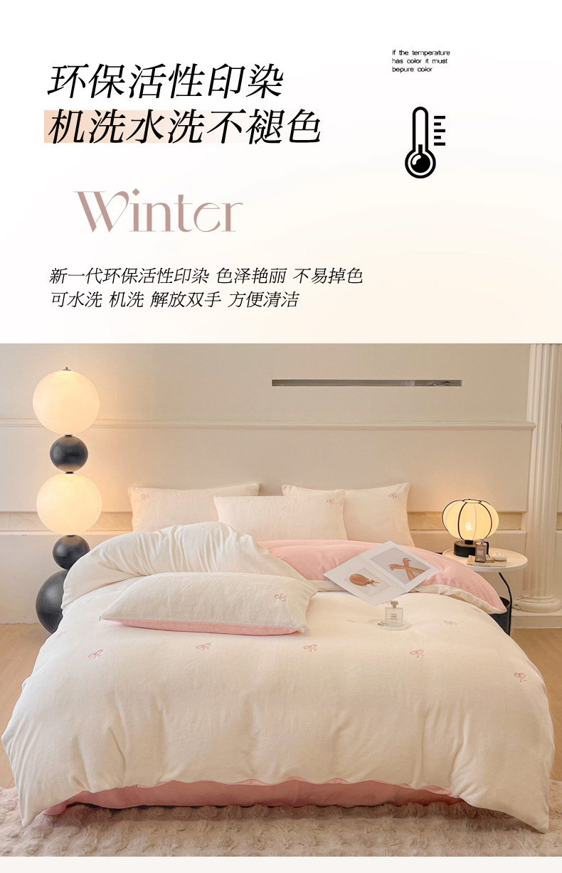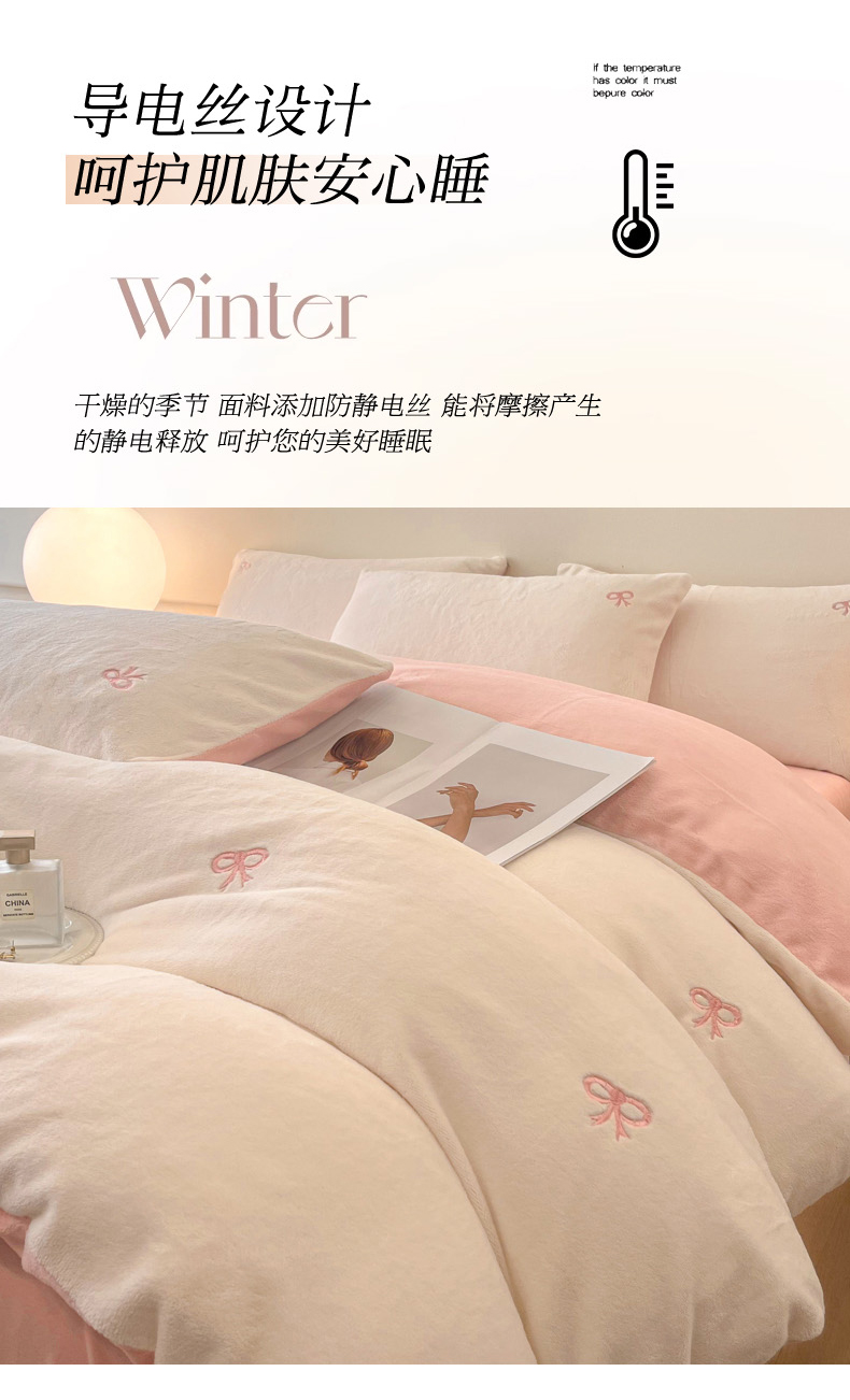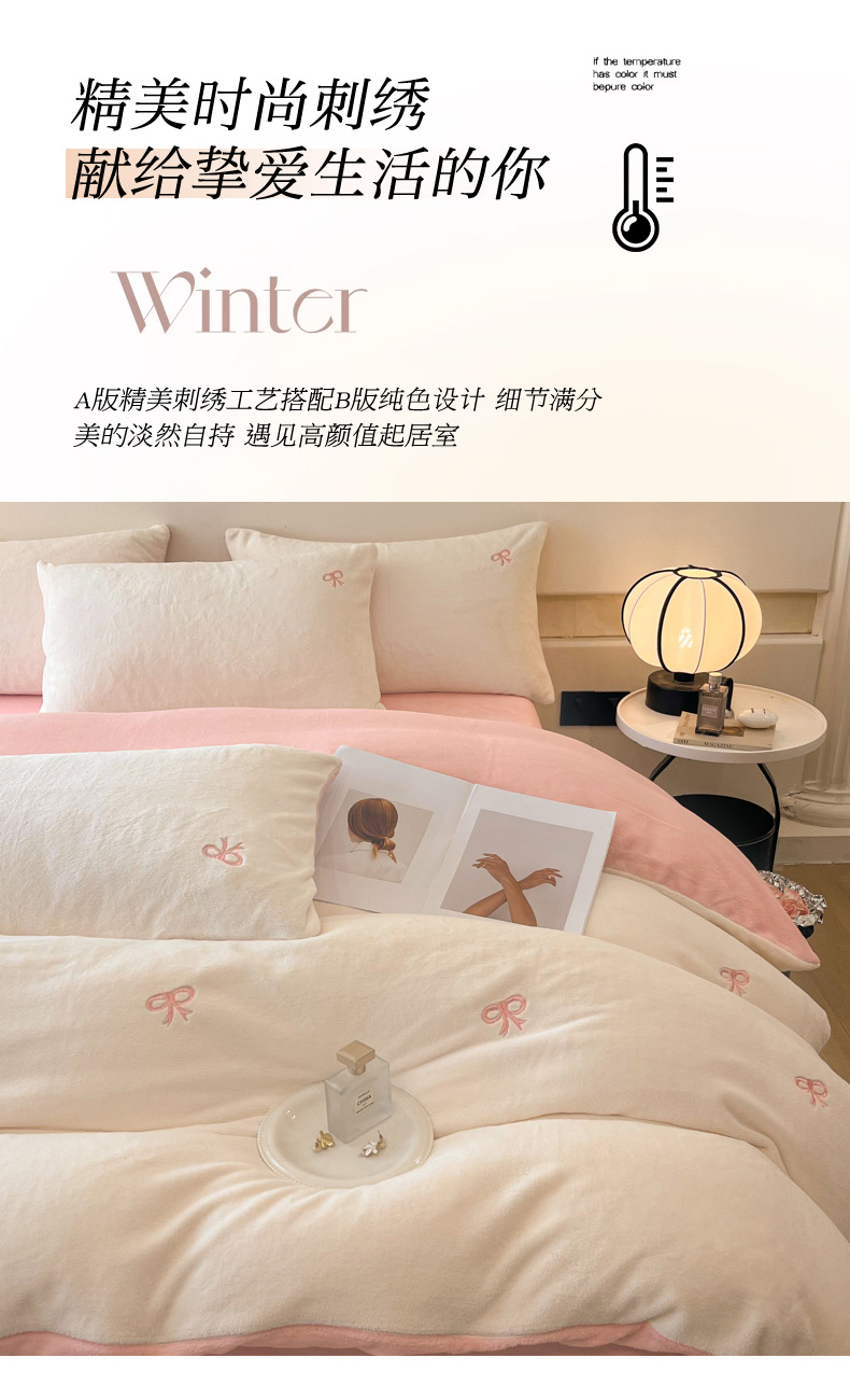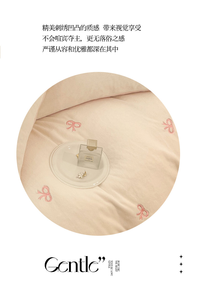 当前位置: 91家纺网 > 商品网购 > 床品套件 > 四件套 > 牛奶绒四件套 > 柒月 2024新款加厚保暖牛奶绒刺绣四件套 蝴蝶结粉