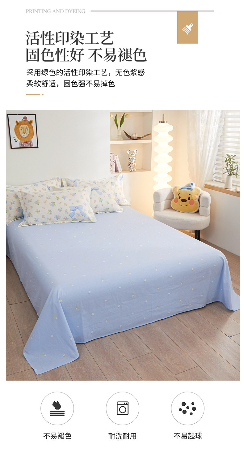 商品名称:钰伶 2025新款全棉简约12868纯棉单床单 花朵蝴蝶结