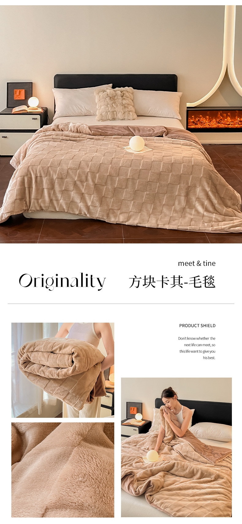 商品名称:2024新款A类法式高克重兔绒多功能毛毯被套双用盖毯 方块卡其-毛毯