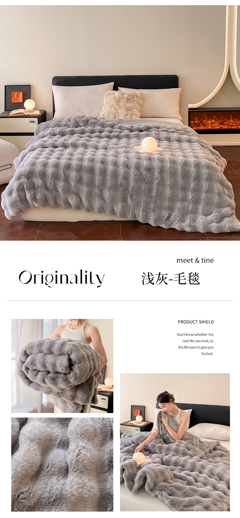 商品名称:2024新款A类法式高克重兔绒多功能毛毯被套双用盖毯 浅灰-毛毯