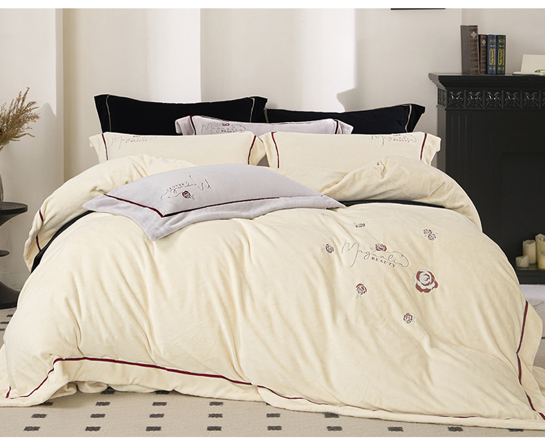 2024新款高克重牛奶绒绣花四件套-奥黛丽 奥黛丽-奶昔白