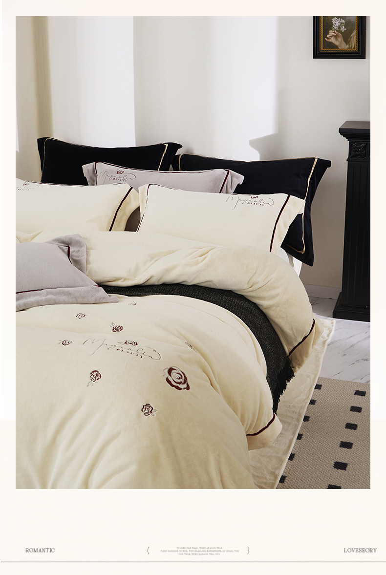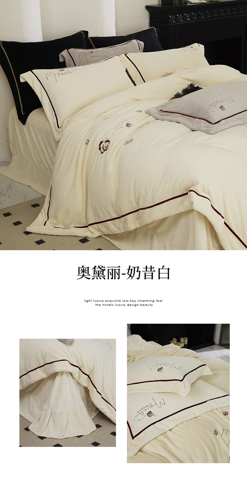商品名称:2024新款高克重牛奶绒绣花四件套-奥黛丽 奥黛丽-奶昔白