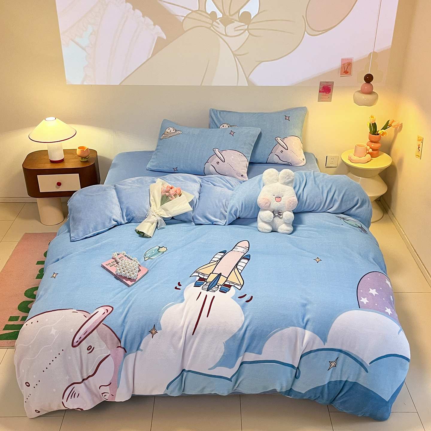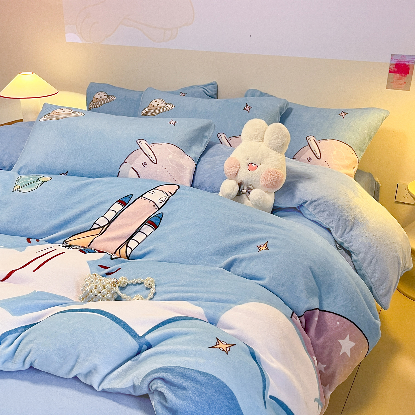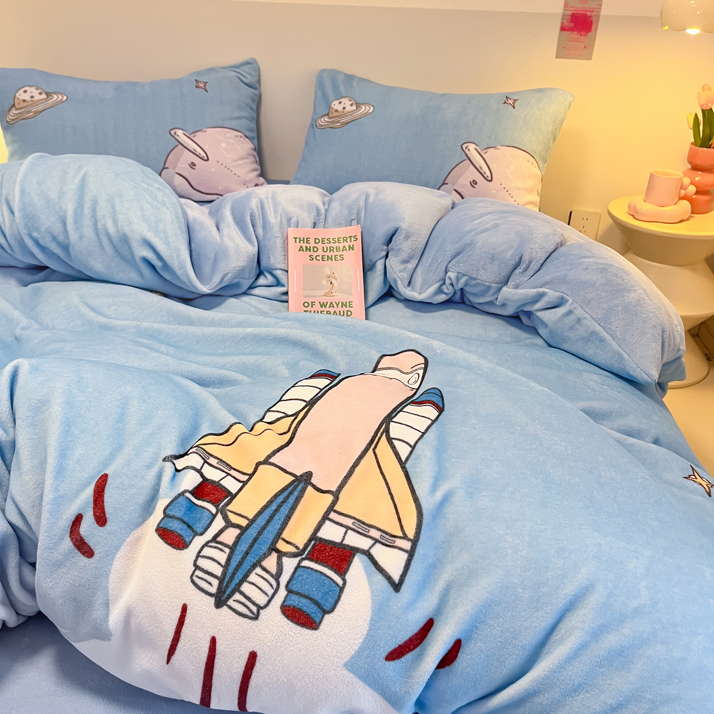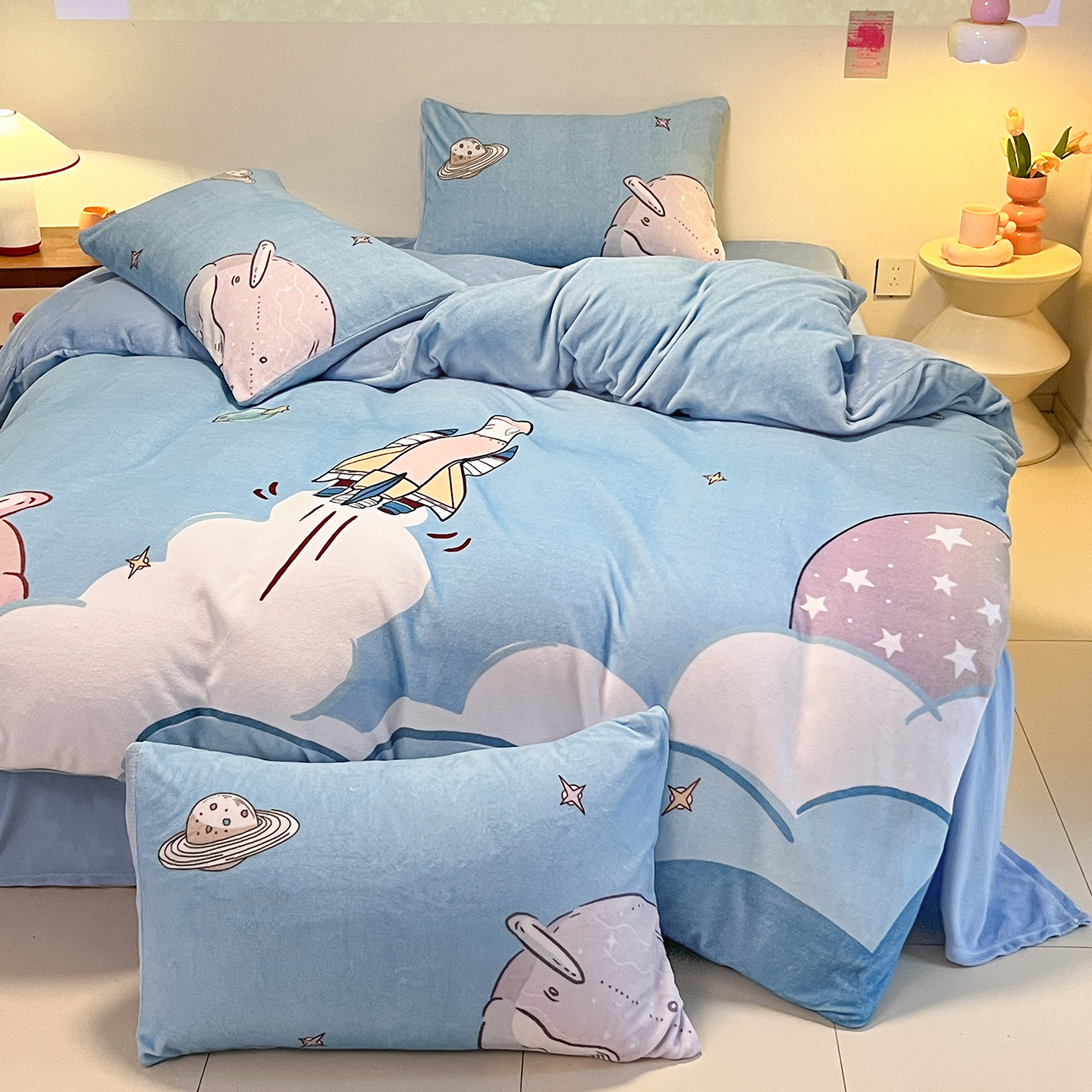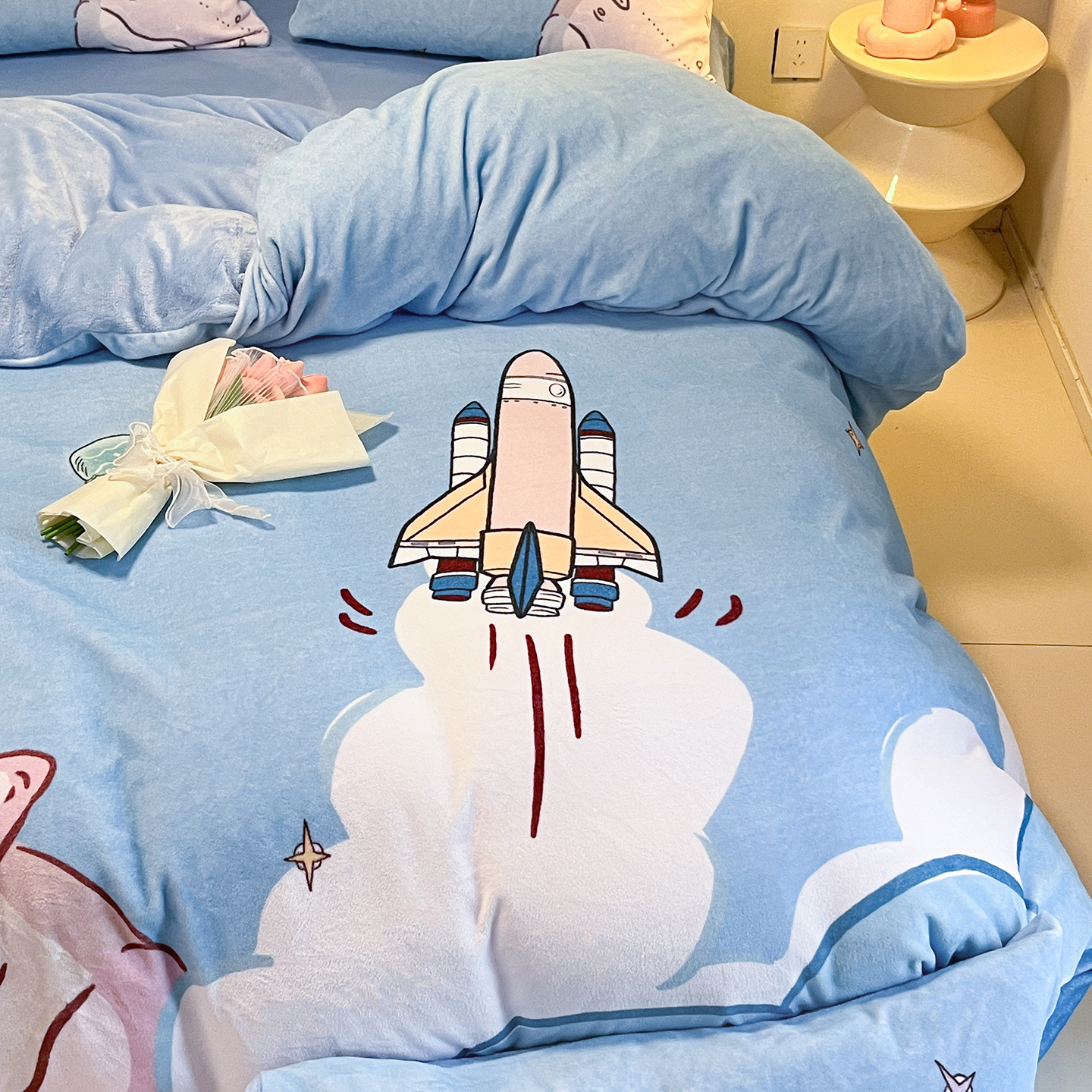 新方向 2025新款全消光A类儿童牛奶绒四件套-飞行游 飞行游-蓝