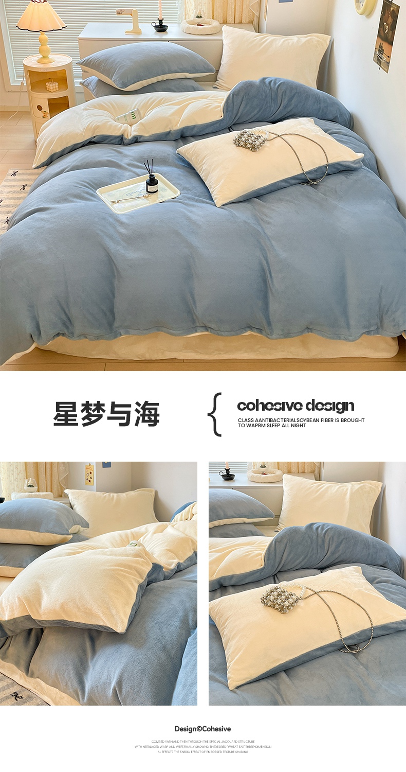 寐眠 新款牛奶绒纯色双拼四件套-风格二 星梦与海