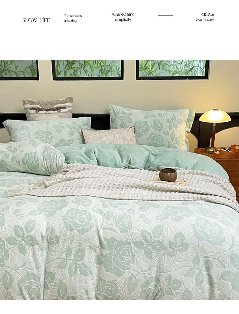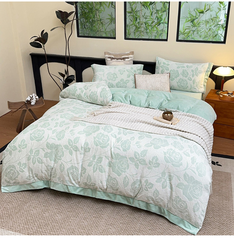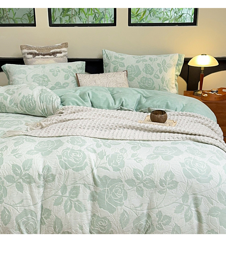 氧家 2024新款雕花绒四件套 玫瑰花语-绿