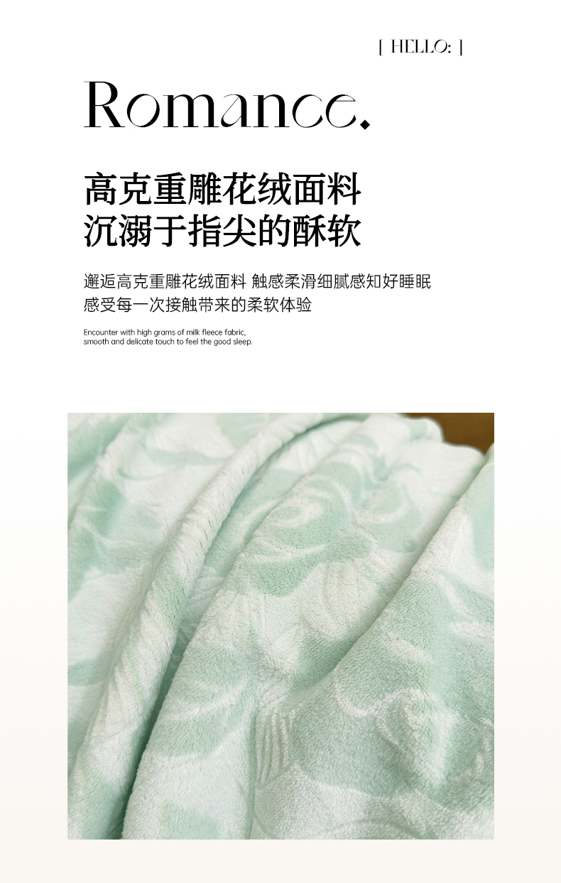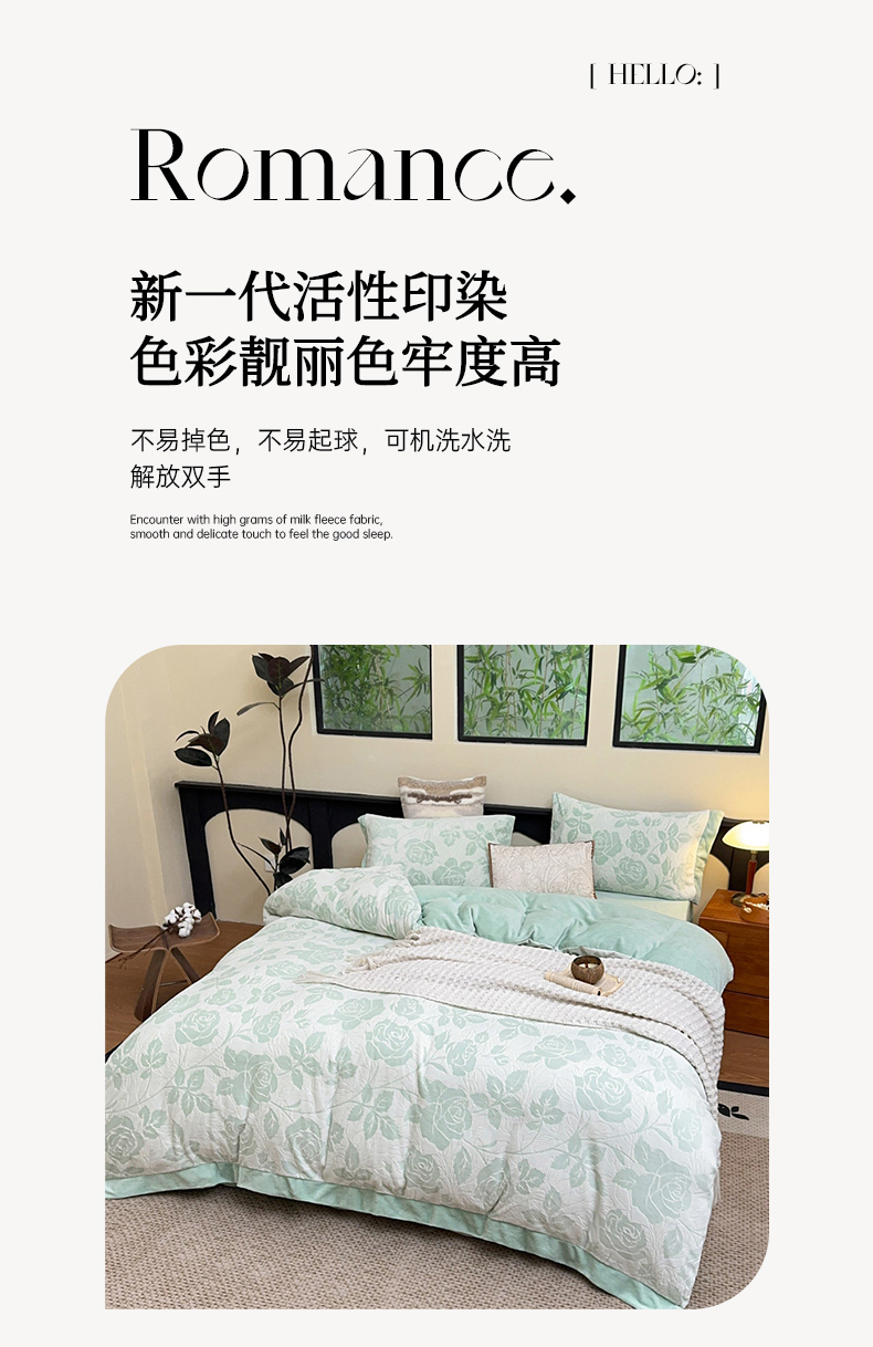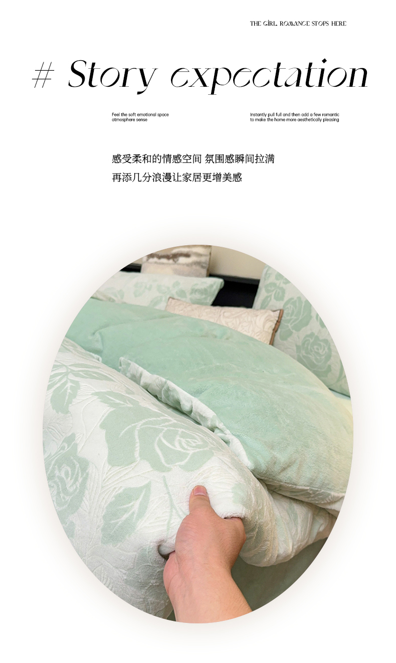 商品名称:氧家 2024新款雕花绒四件套 玫瑰花语-绿