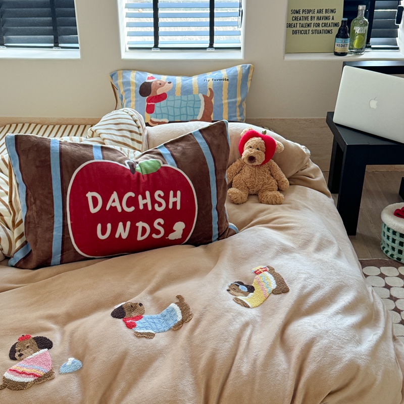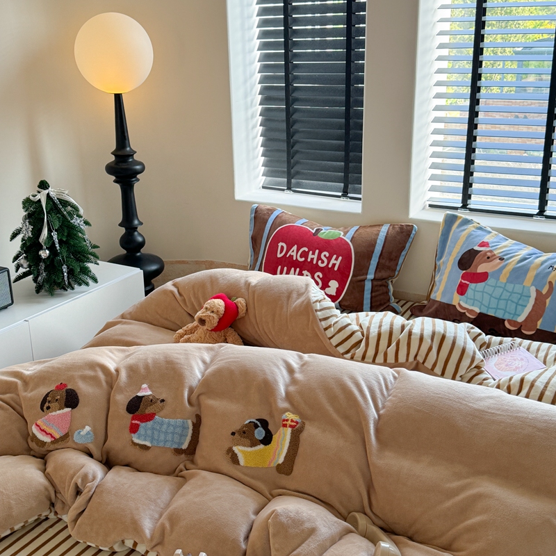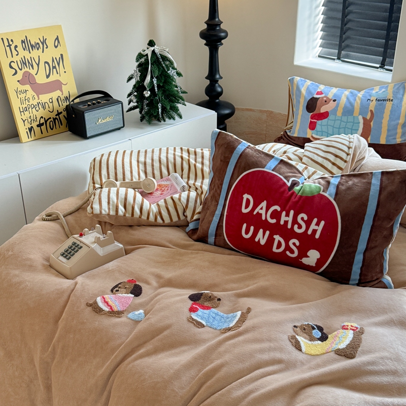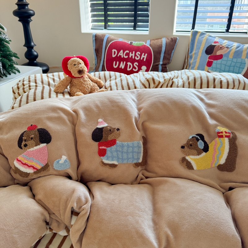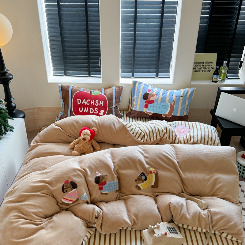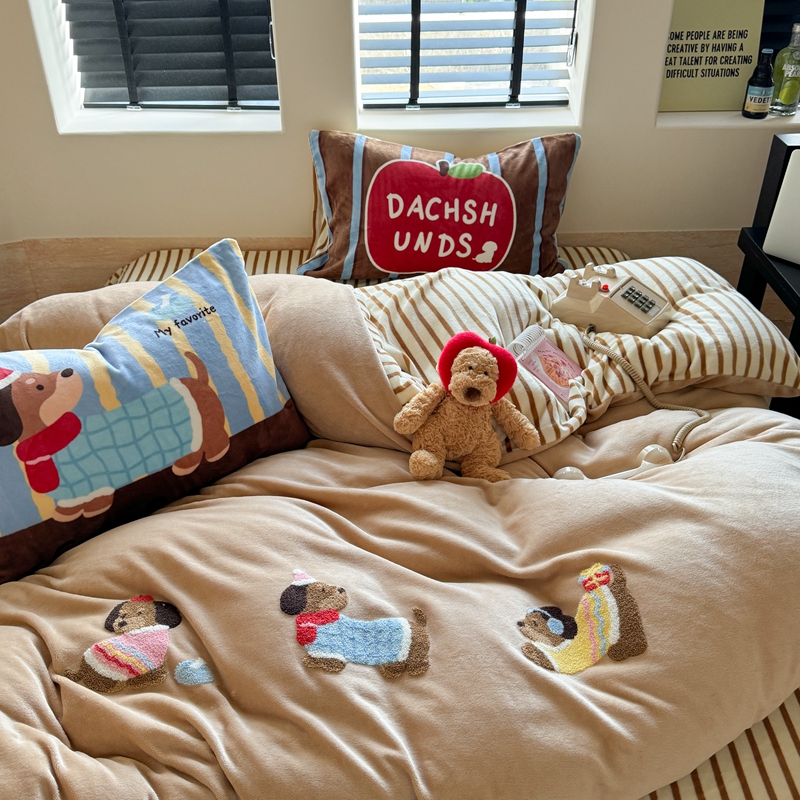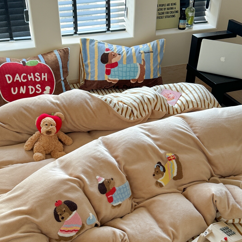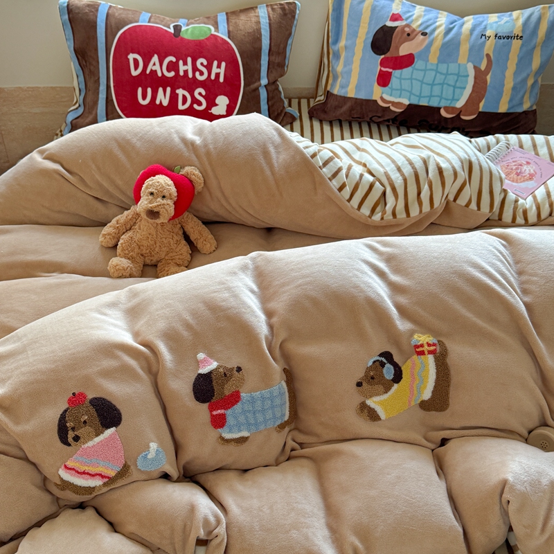 柚子YOUTH 2024新款牛奶绒四件套-三小只毛巾绣系列 礼物狗