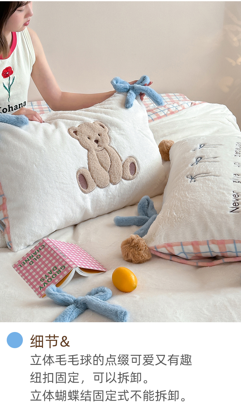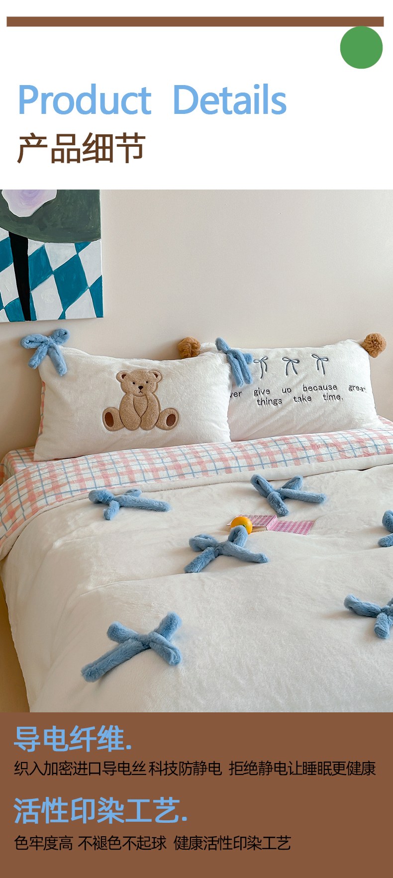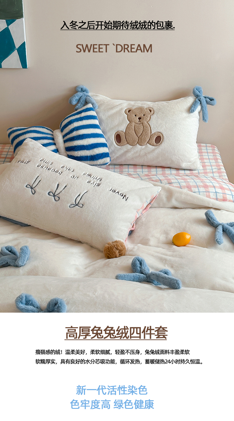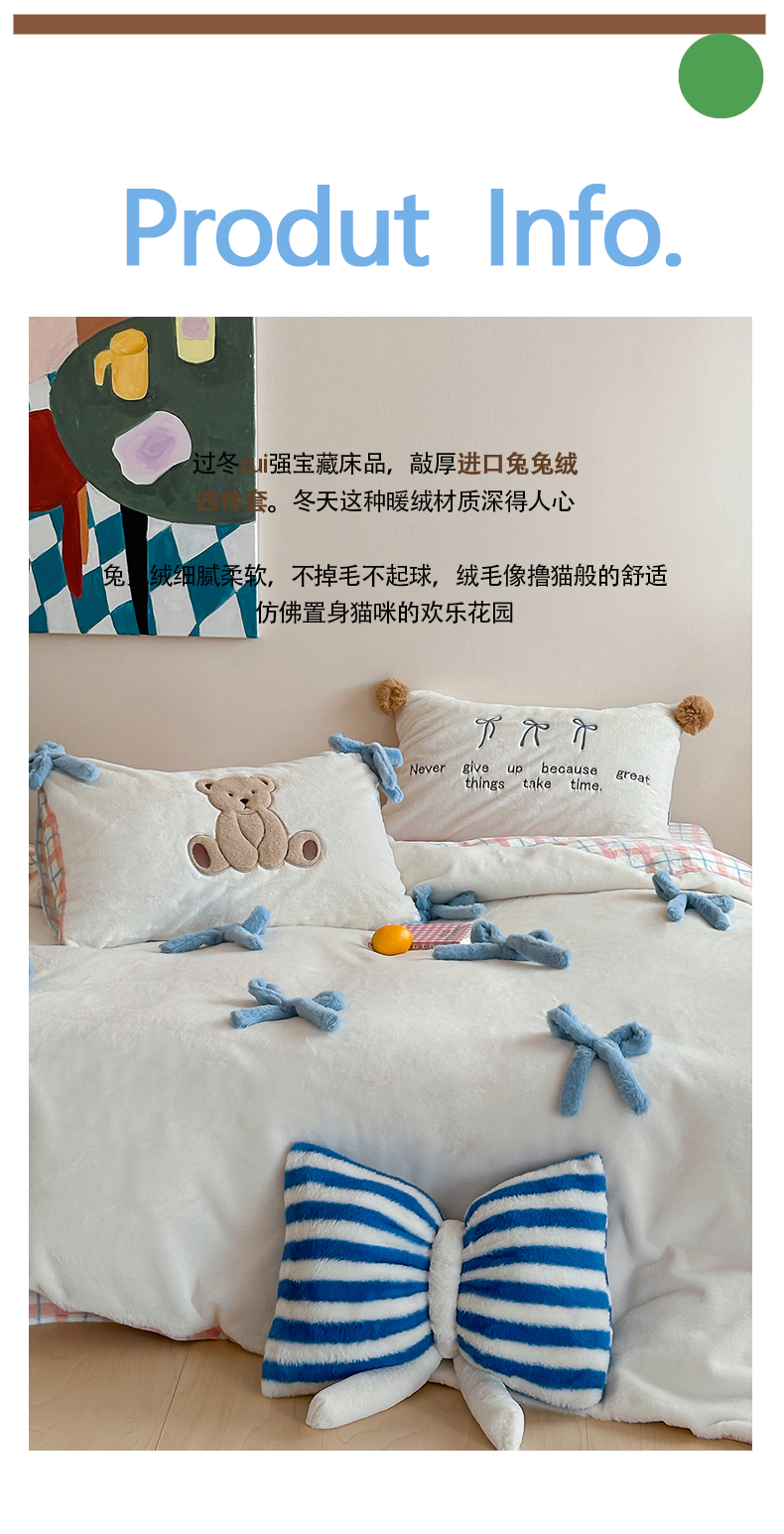 桔子家纺 2024新款兔兔绒蝴蝶结四件套 小熊属白