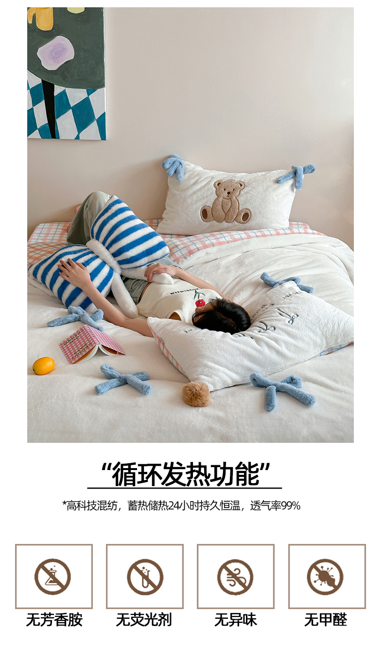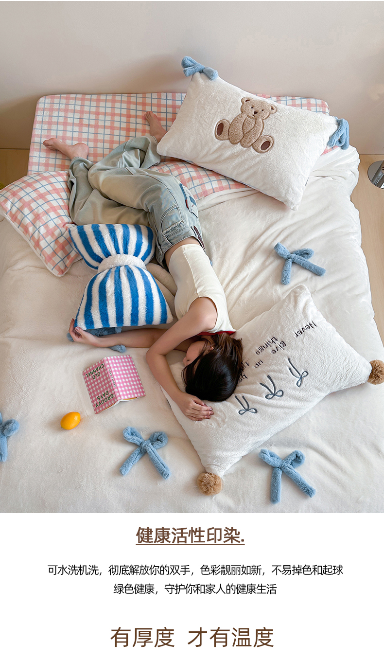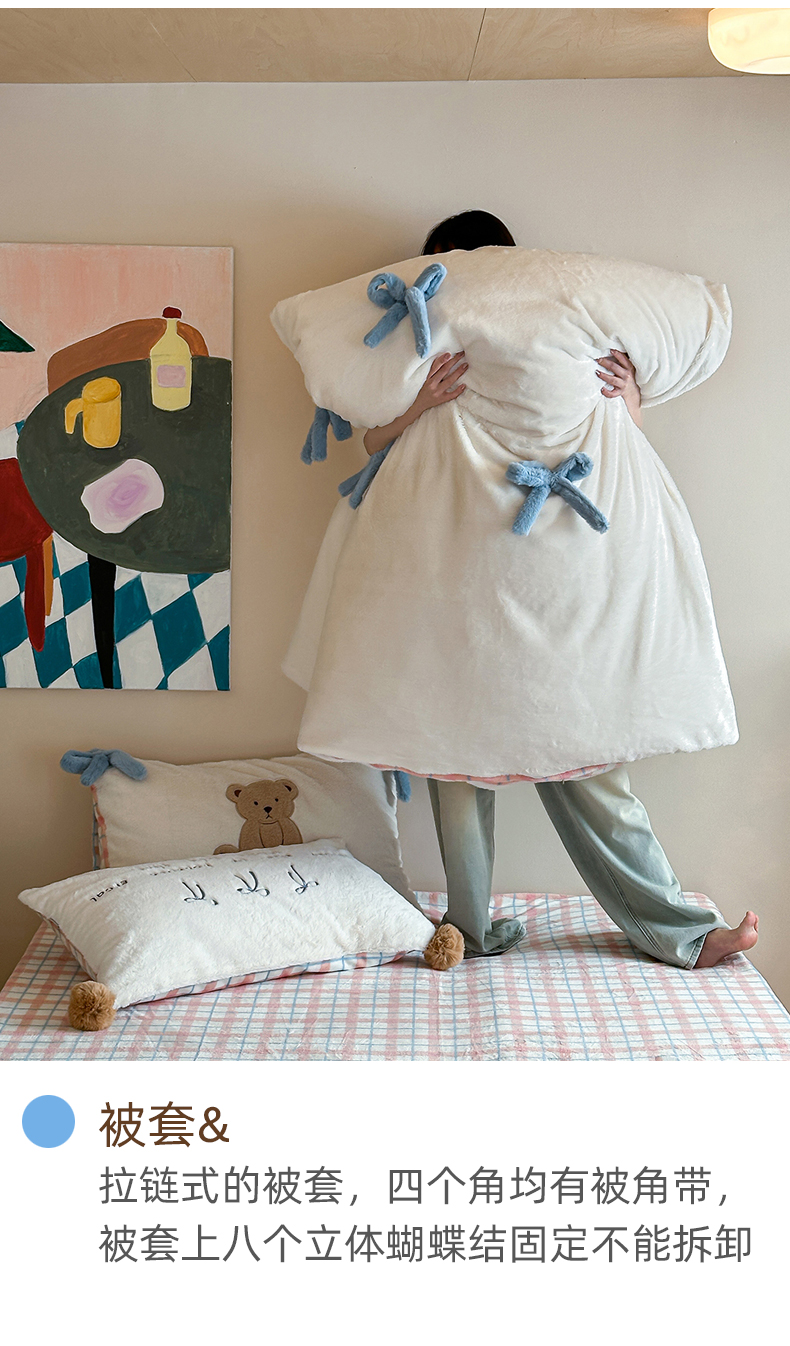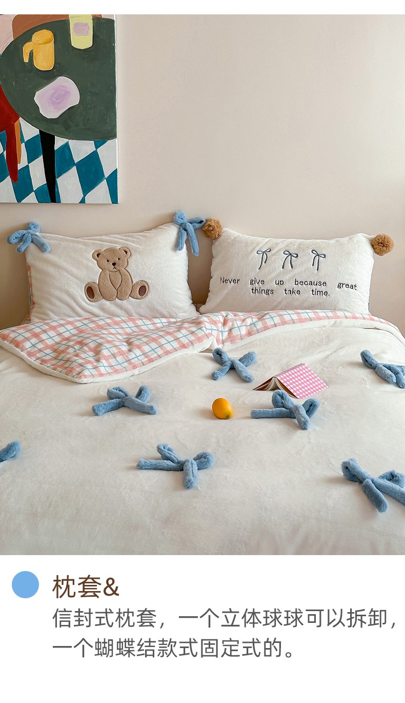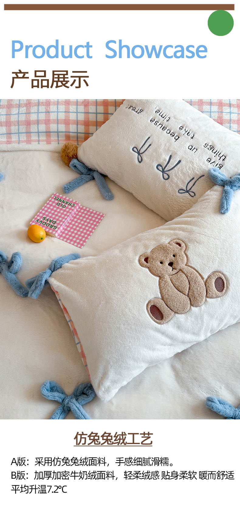 桔子家纺 2024新款兔兔绒蝴蝶结四件套 小熊属白
