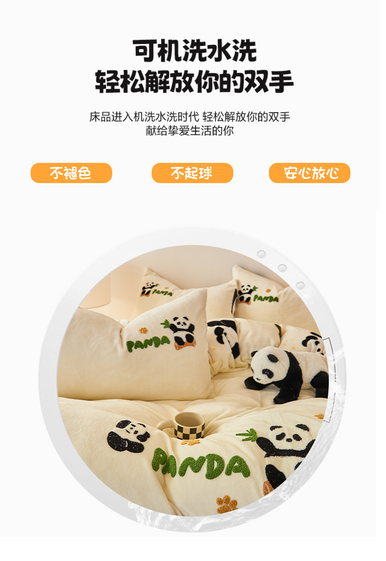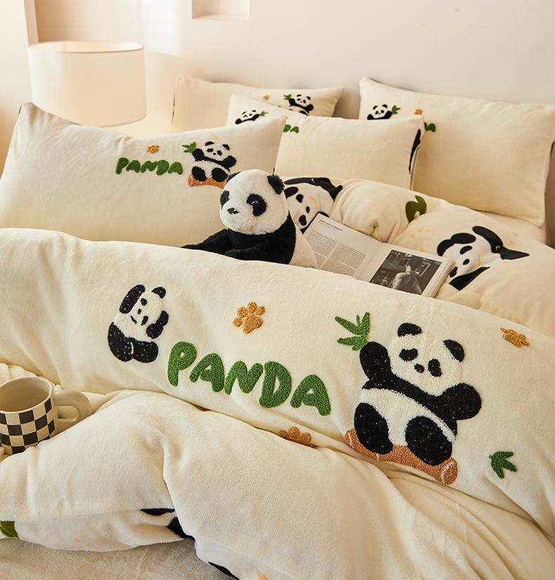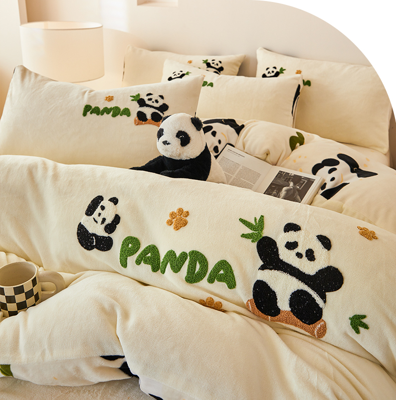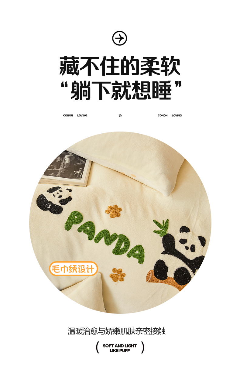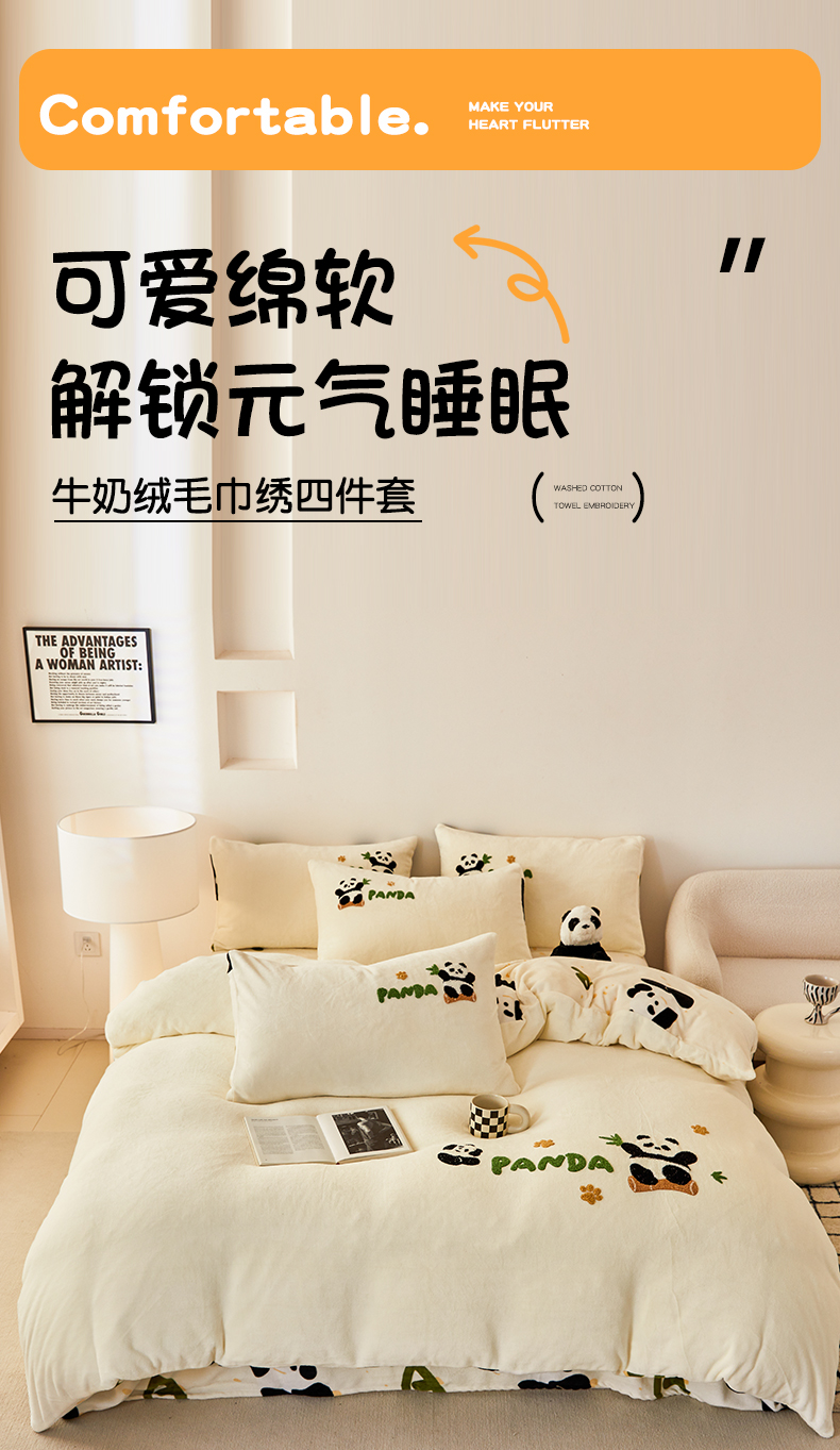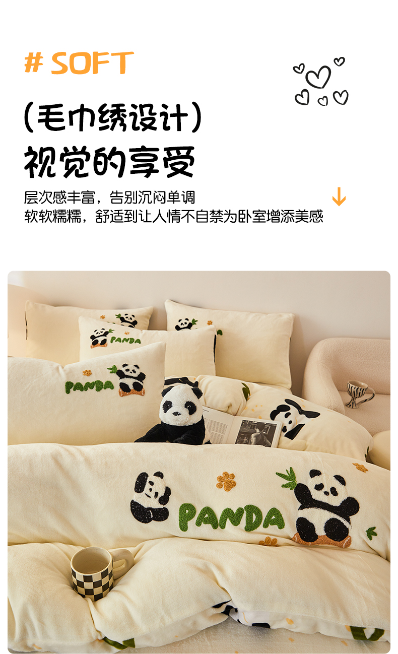 商品名称:娜娜 2024新款高克重牛奶绒毛巾绣四件套 熊猫戏竹