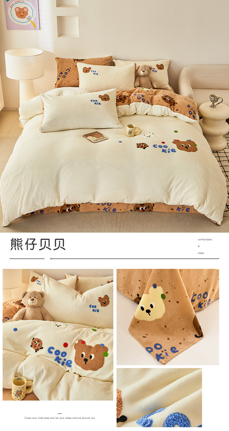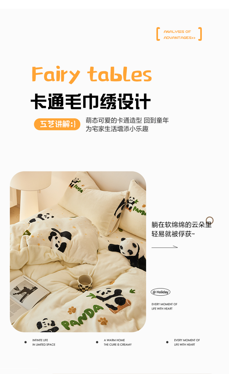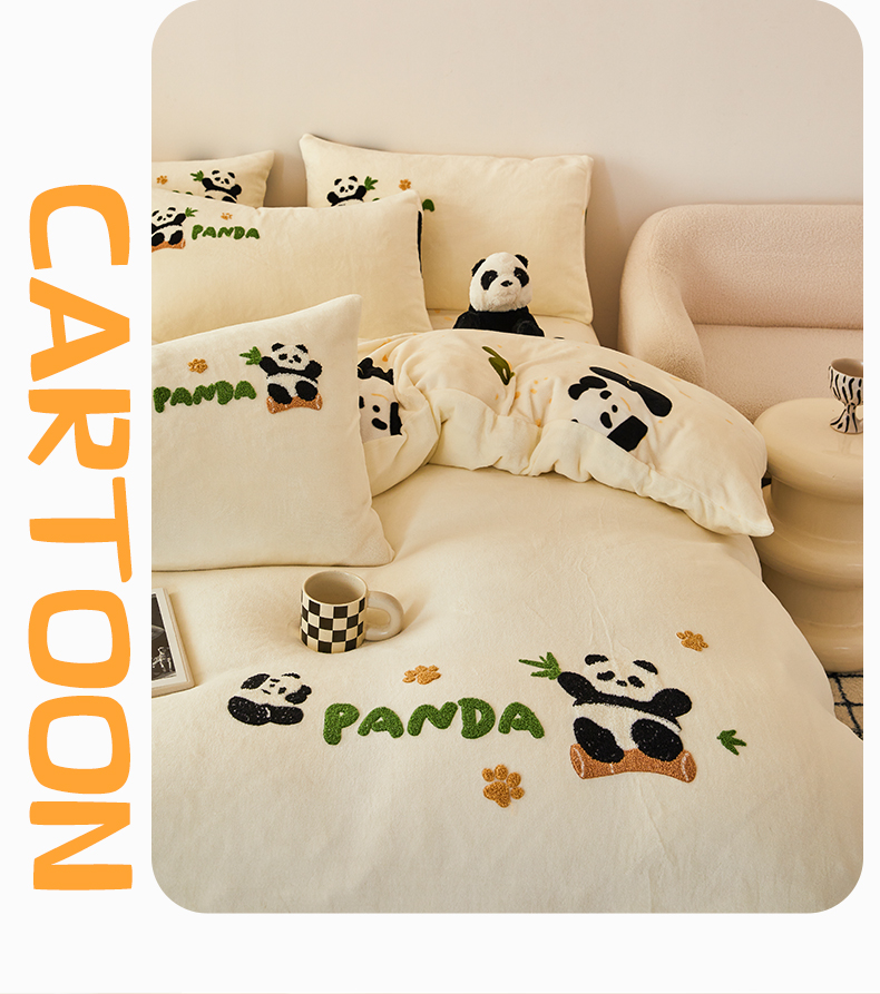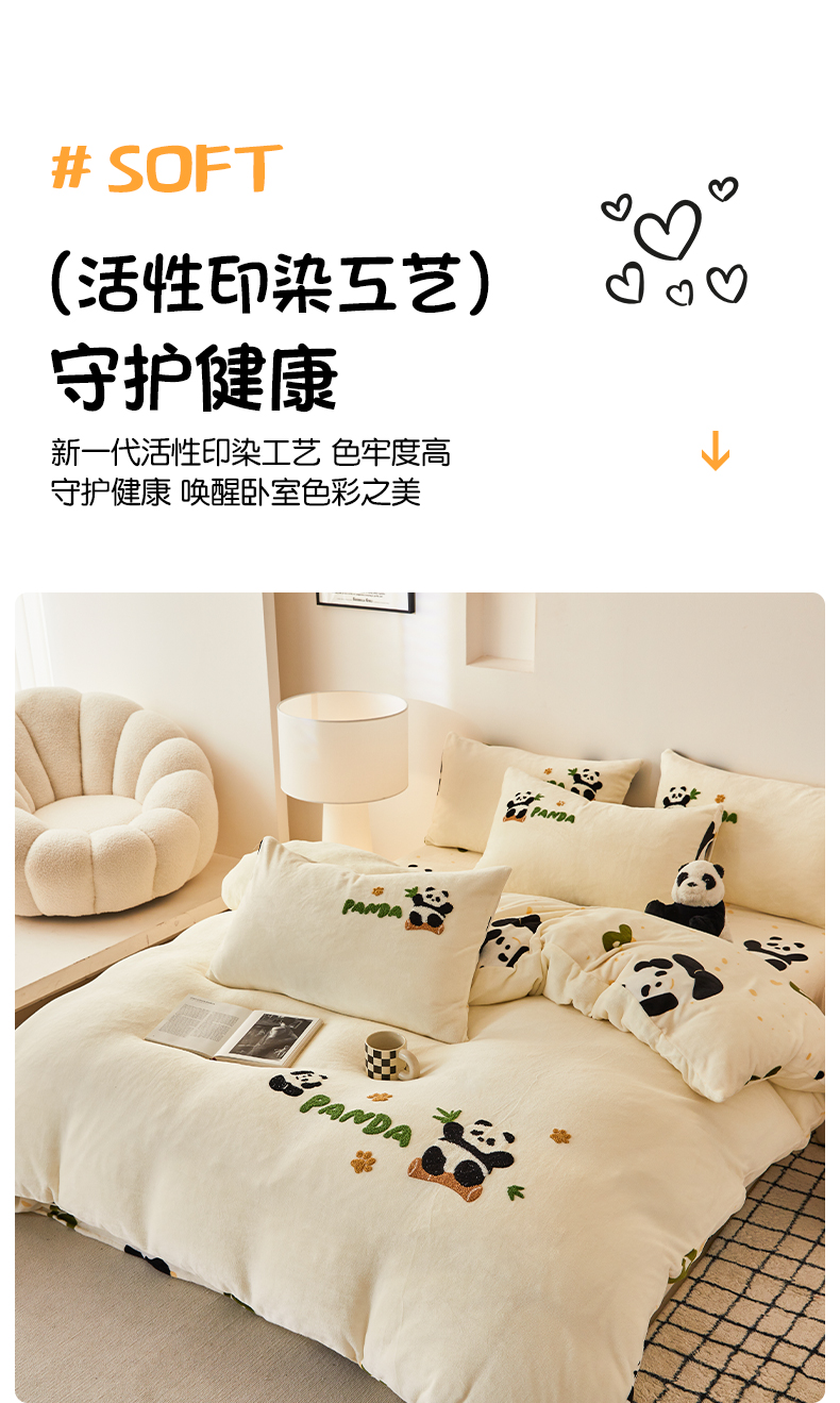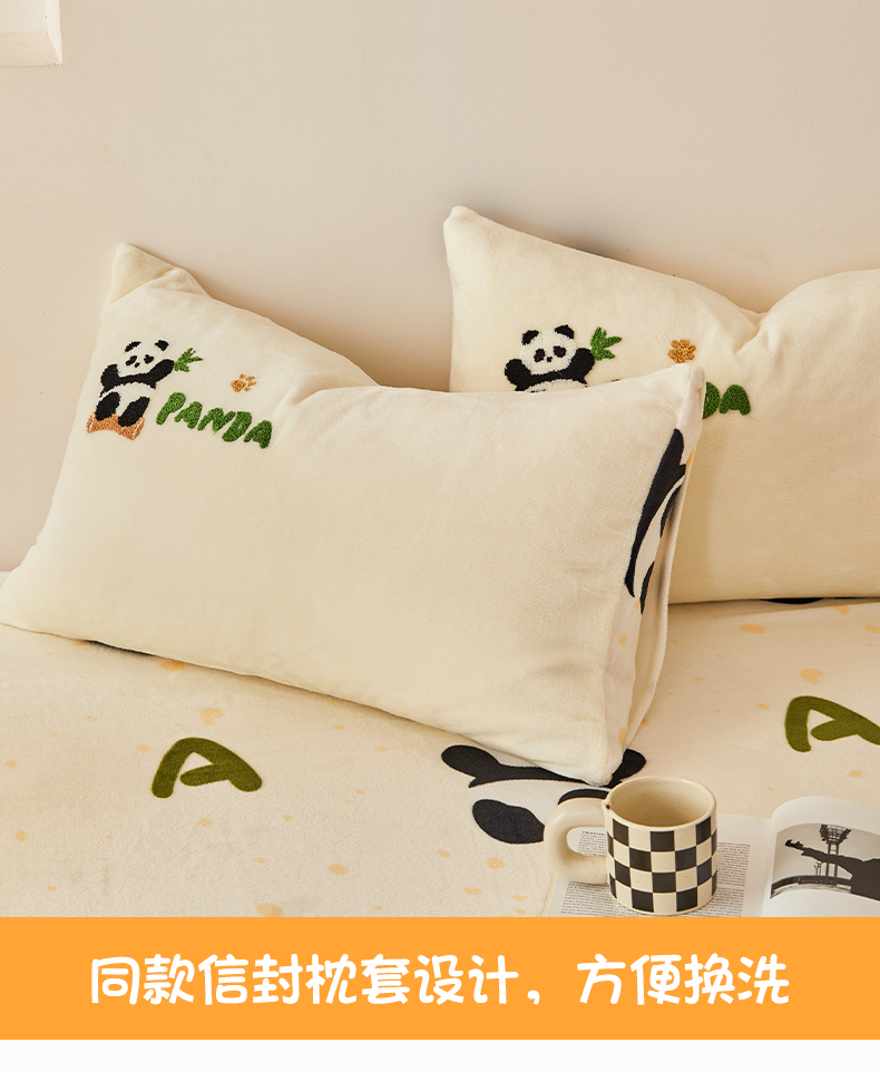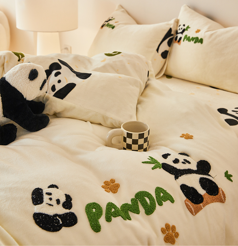 商品名称:娜娜 2024新款高克重牛奶绒毛巾绣四件套 熊猫戏竹