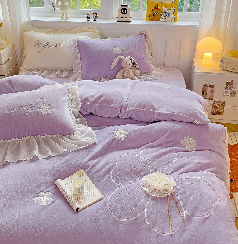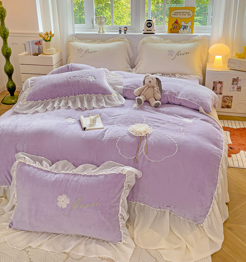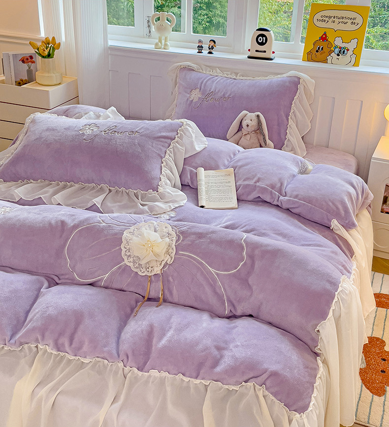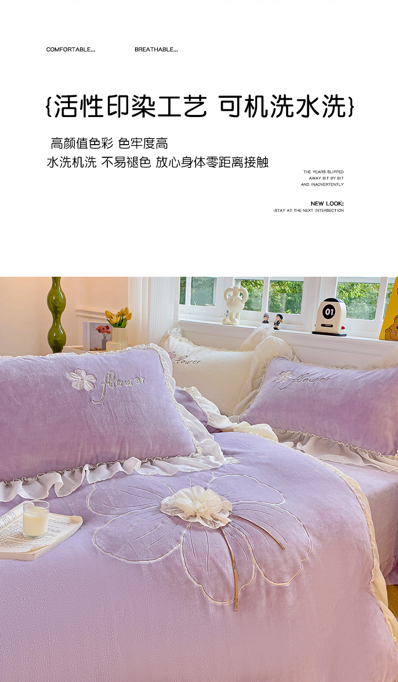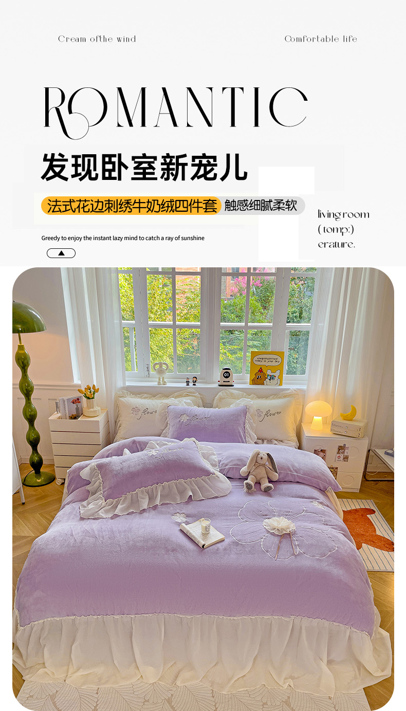 娜娜 2024新款法式花边牛奶绒刺绣四件套-花蕊-花香引蝶系列 花蕊-紫