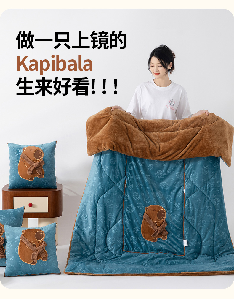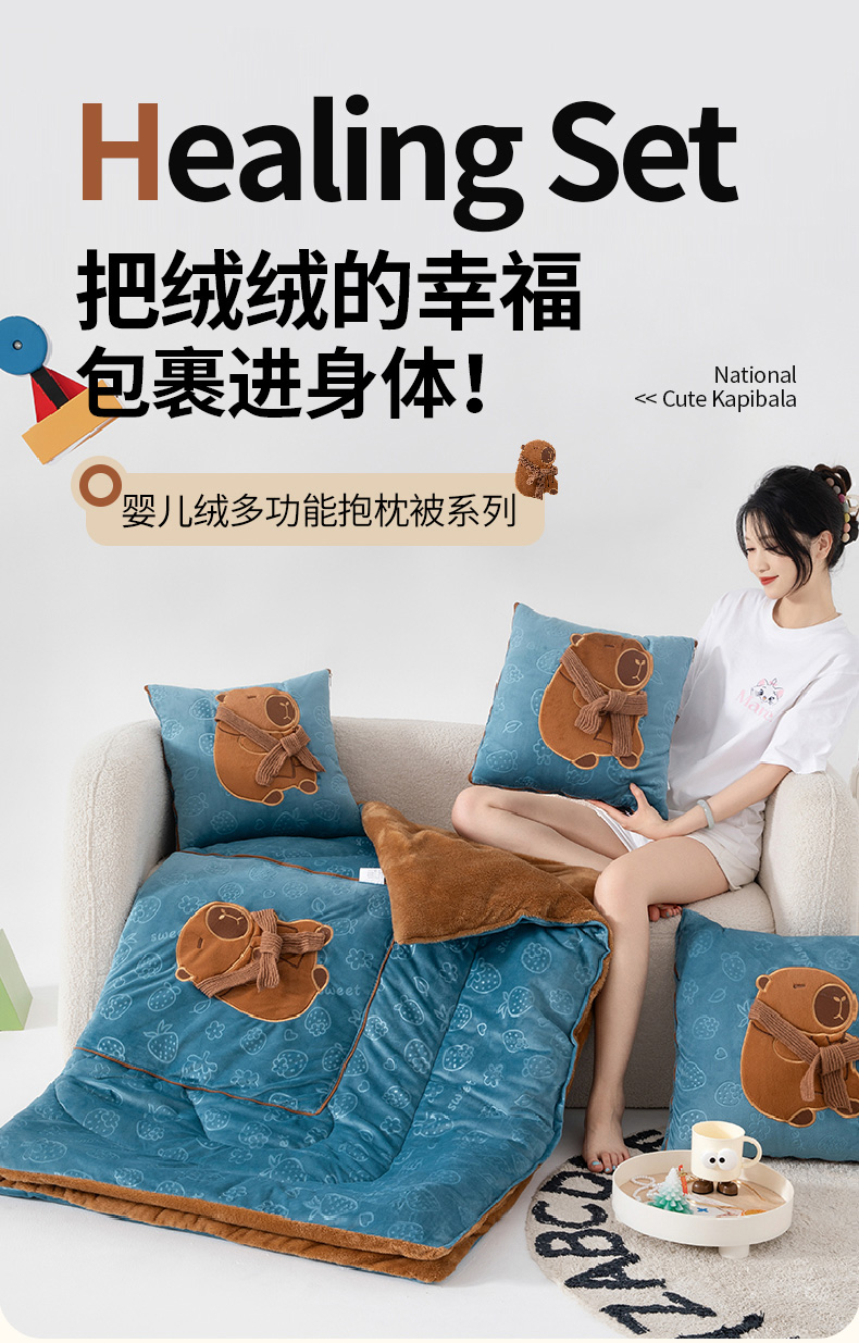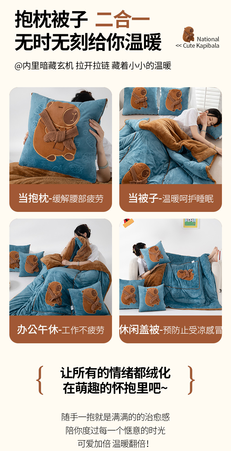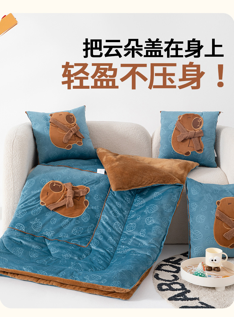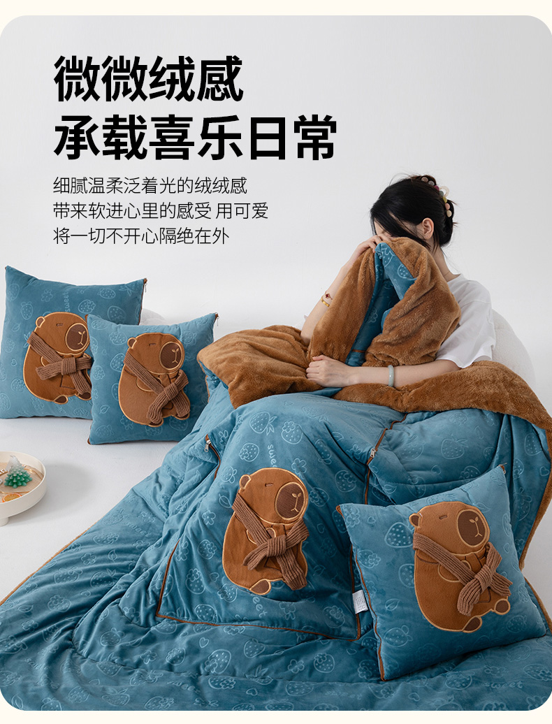 (总)翰轩家居 2023新款全棉印花小清新豆豆绒抱枕被,草莓粉,草莓蓝,春晓蓝,花语黄,静秋,琉璃,萌萌兔,幽兰,油画格韵,布拉格,粉色小熊,花园漫步,浪漫猫,心想事橙,辛巴达,遇见