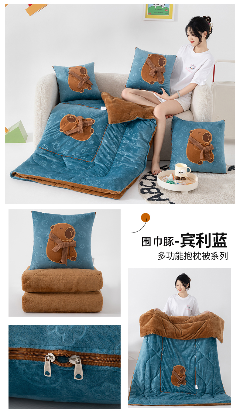 翰轩家居 2024新款宝宝绒围巾豚多功能抱枕被 围巾豚-宾利蓝